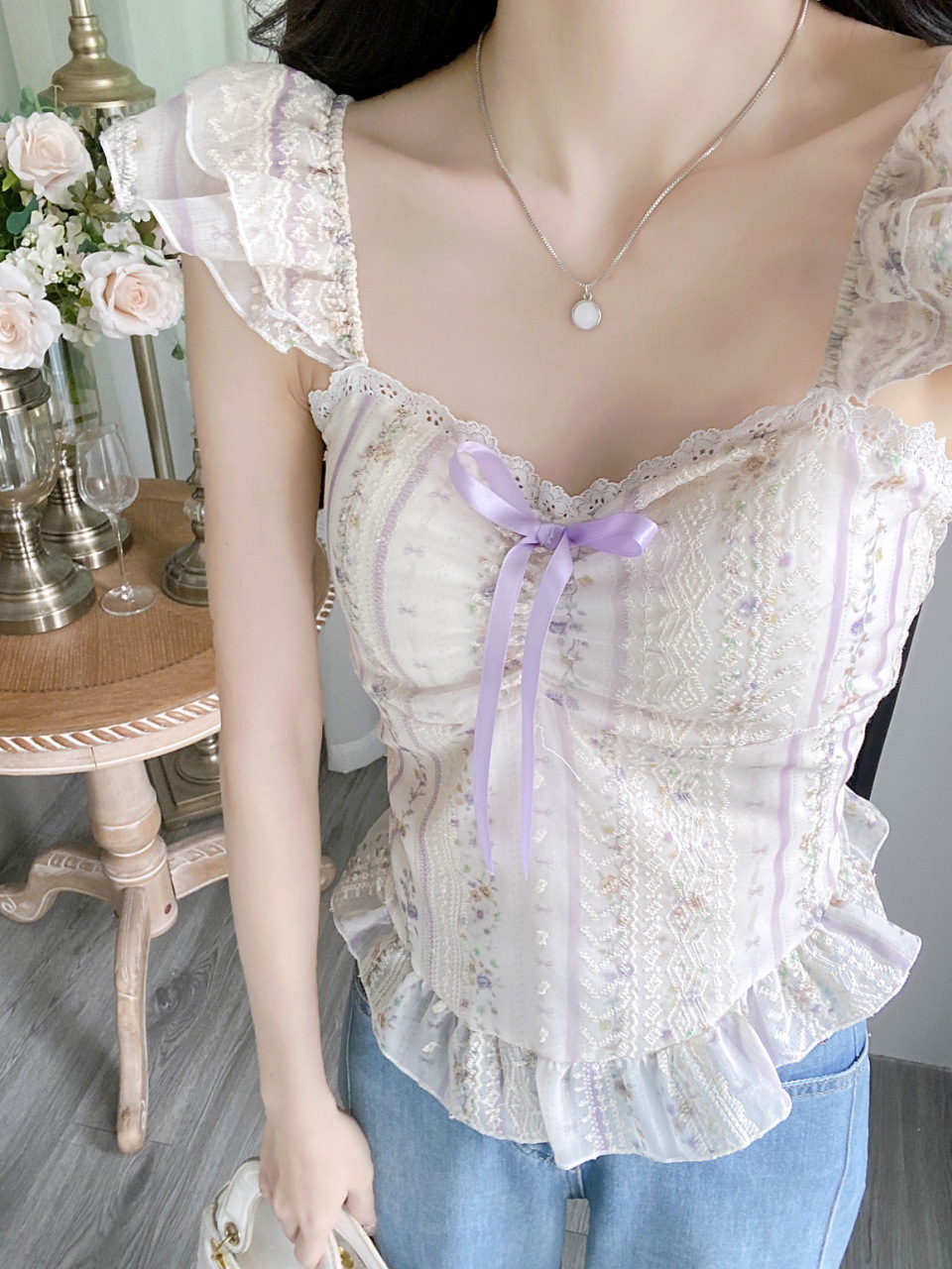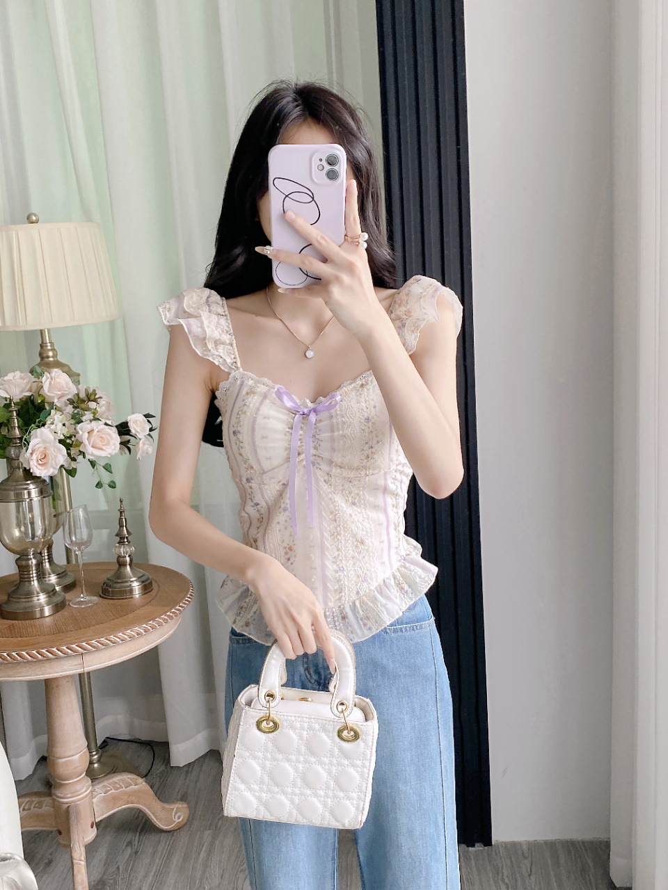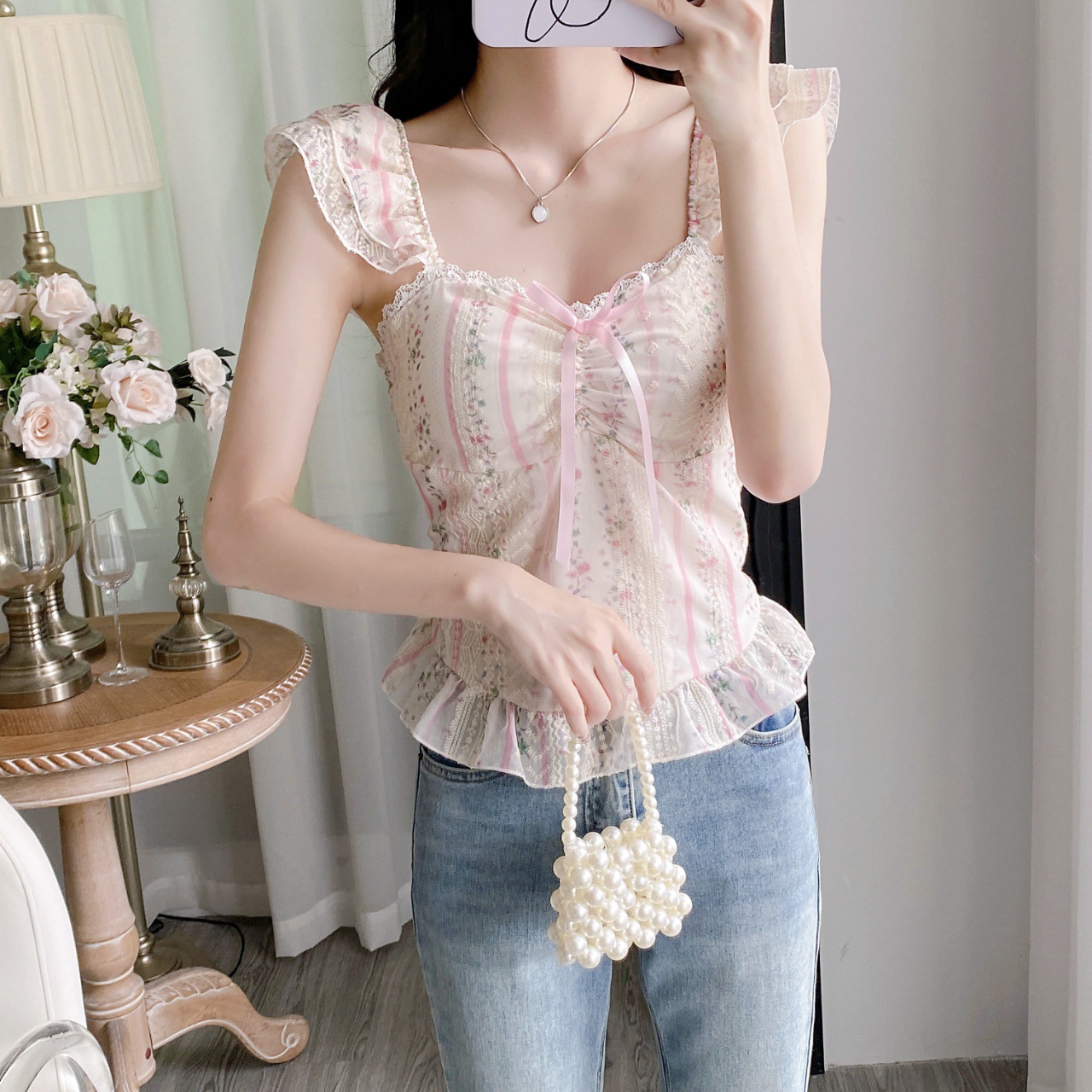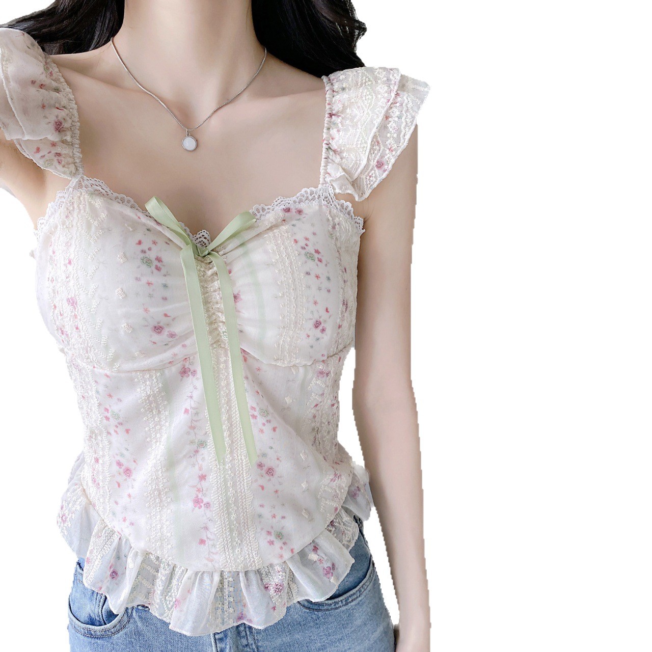 Новый весенне-летний корейский стиль с французским цветочным бантом на шнуровке, красивой спинкой со встроенной нагрудной подушечкой и эластичным удобным жилетом для женщин