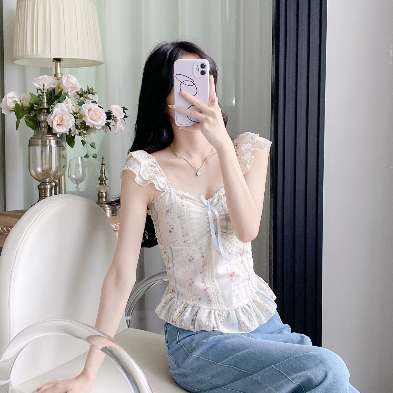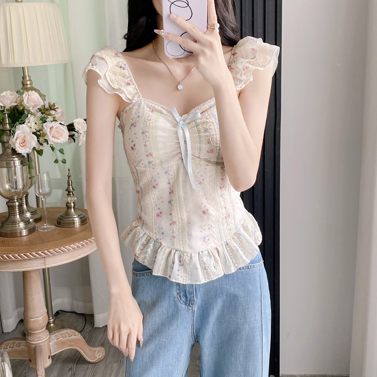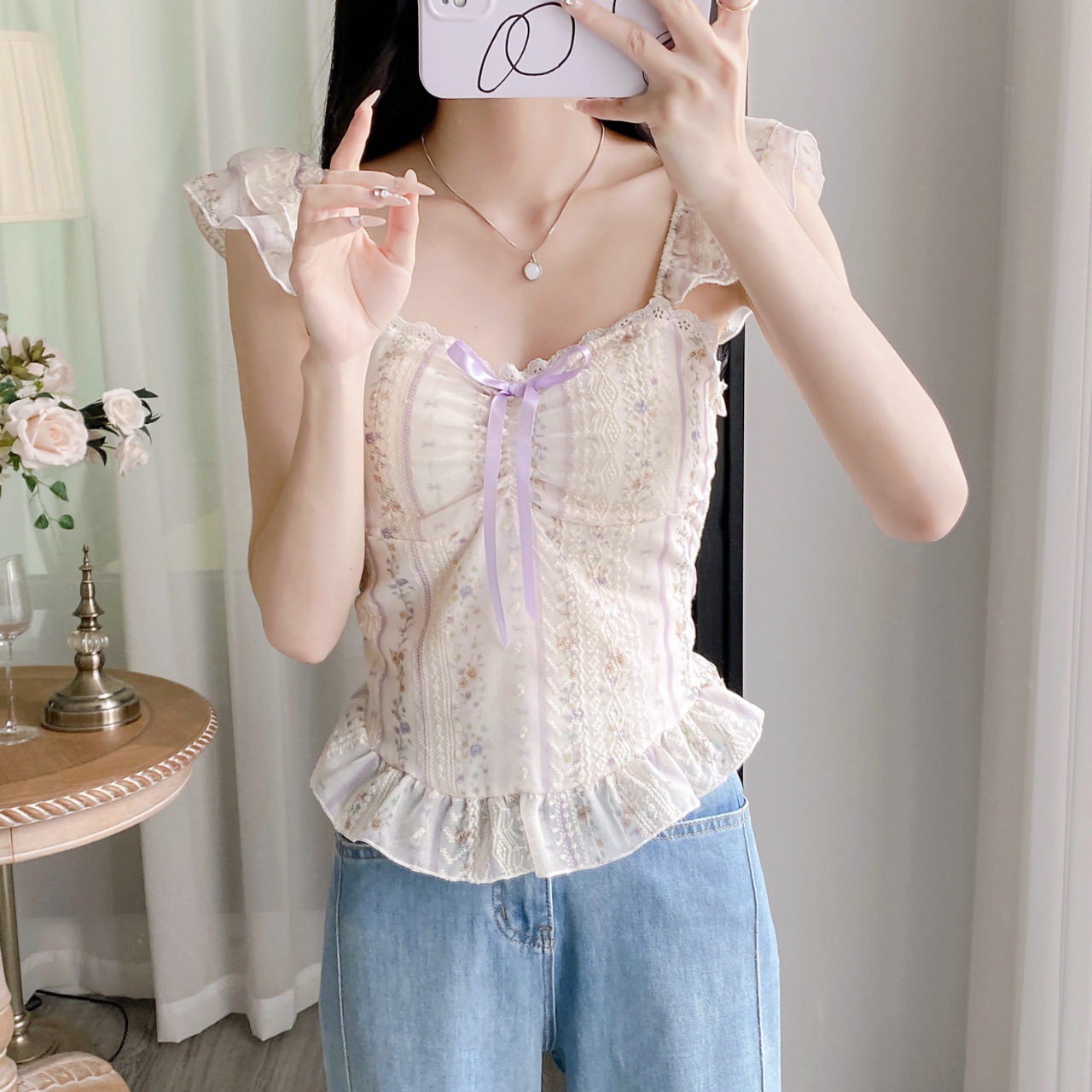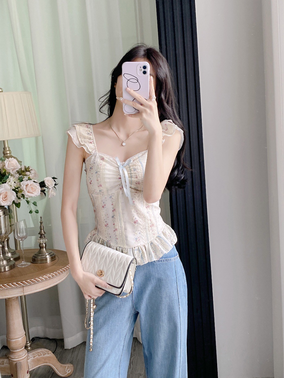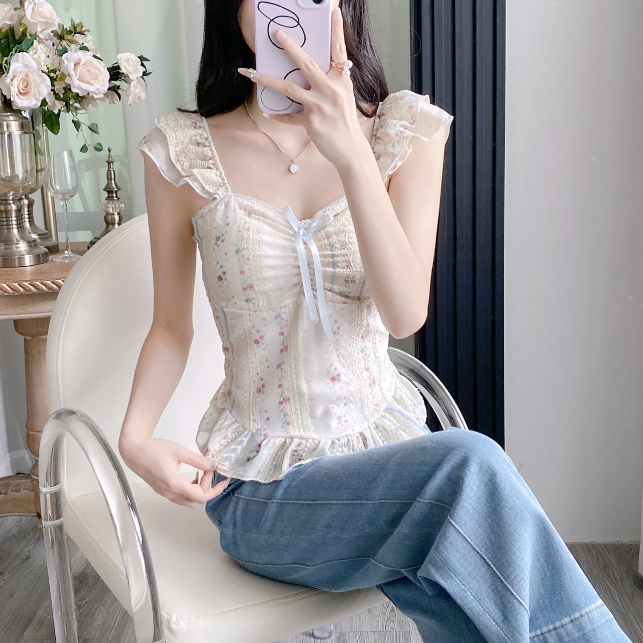 Новый весенне-летний корейский стиль с французским цветочным бантом на шнуровке, красивой спинкой со встроенной нагрудной подушечкой и эластичным удобным жилетом для женщин