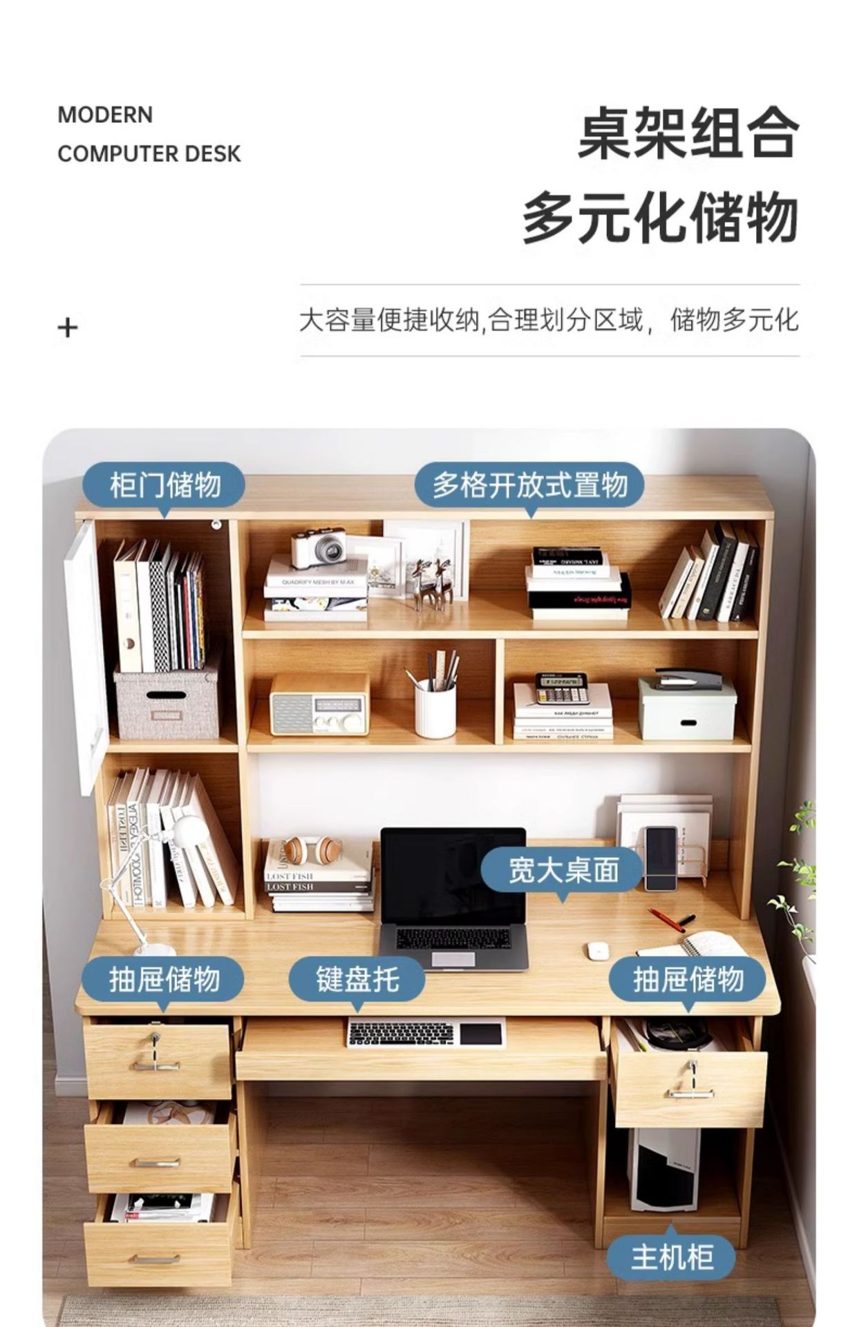 Настольная книжная полка, встроенный стол, домашний стол, студенческий обучающий письменный стол, спальня, настольный компьютер, комбинация стола и стула