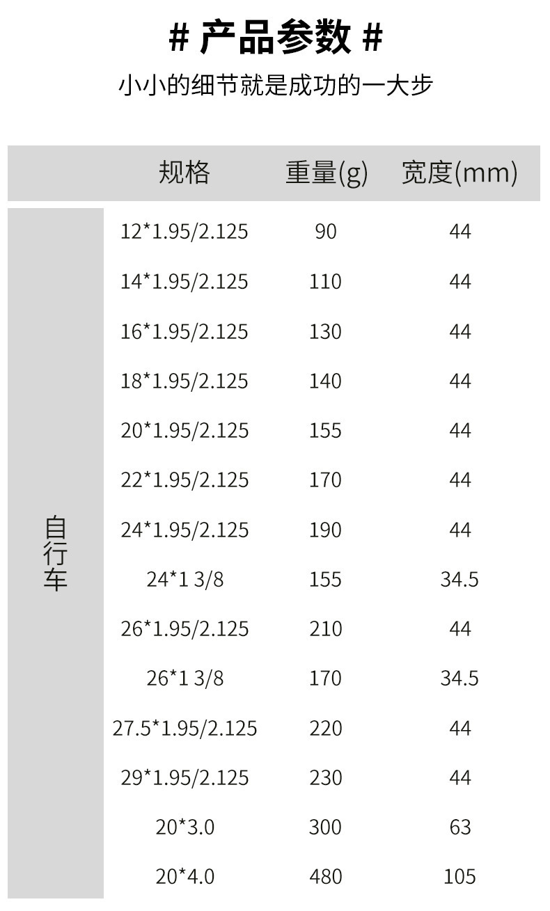 20*1.95/2.125; 22*1.95/2.125; 24*1.95/2.125; 24*1 3/8; 20*3.0; 20*4.0