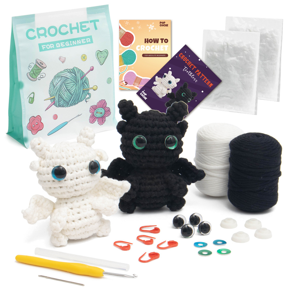 Новая кукла через границу, сделай сам, вязанная крючком ручной работы, комплект из натурального хлопка, черно-белый комплект из беззубой шерсти, вязальный материал