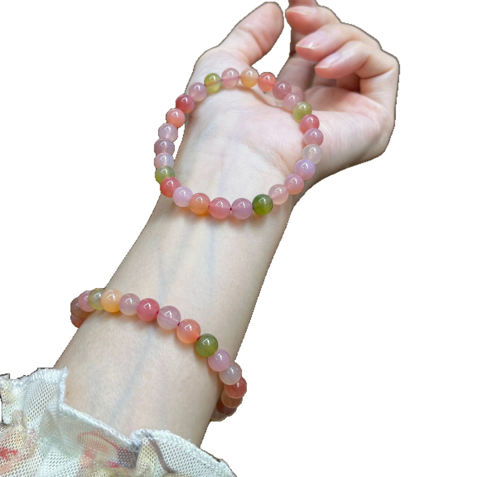 天然彩色糖果盐源玛瑙手串古风女生单圈手链清新甜美高颜值简约款 批发量越大价格越低,可供直播间长期合作,欢迎来电私聊