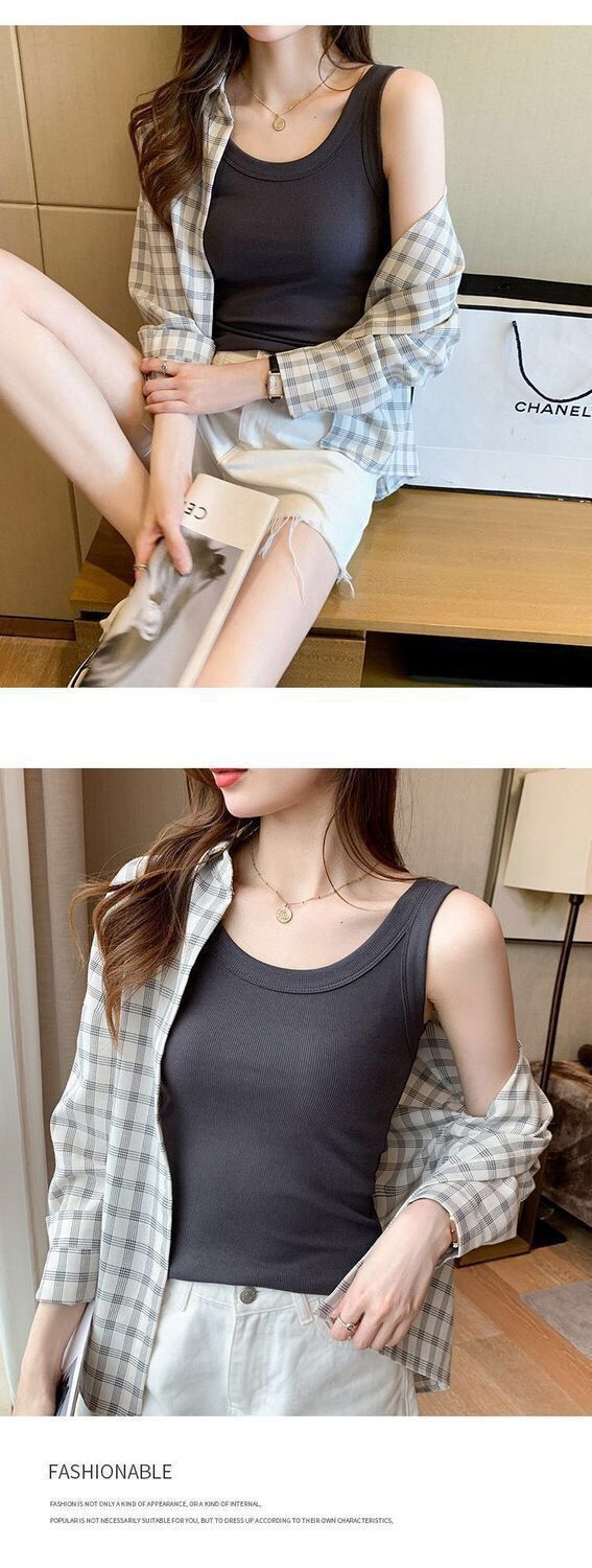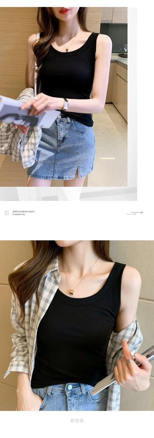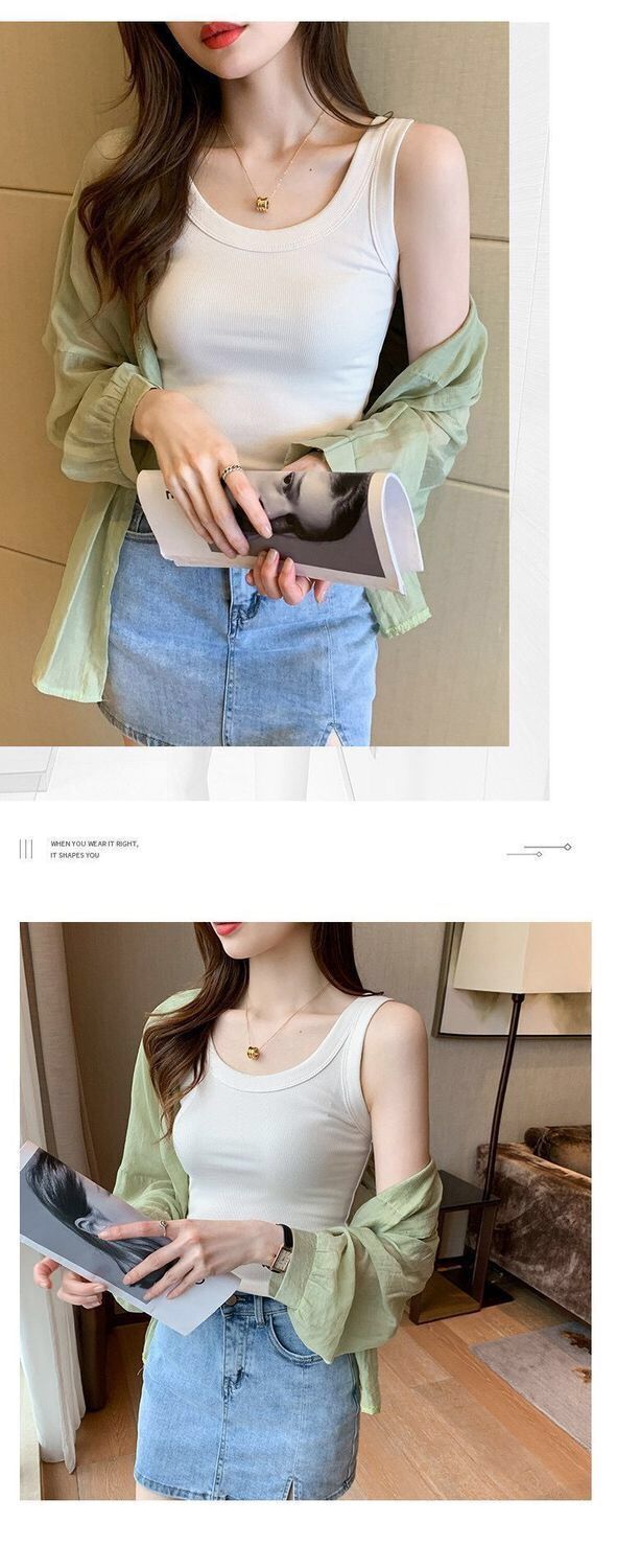 Популярная в TikTok универсальная женская майка без рукавов с защитой от воздействия окружающей среды, летняя облегающая верхняя одежда в корейском стиле.