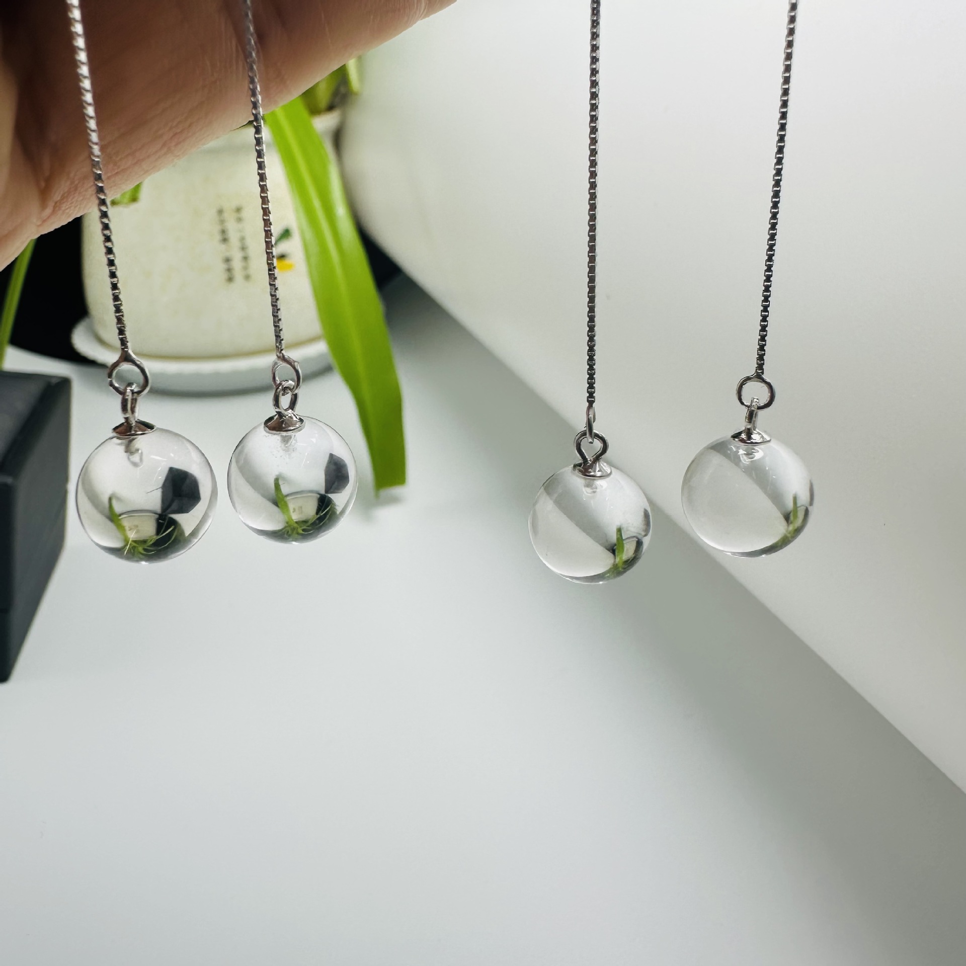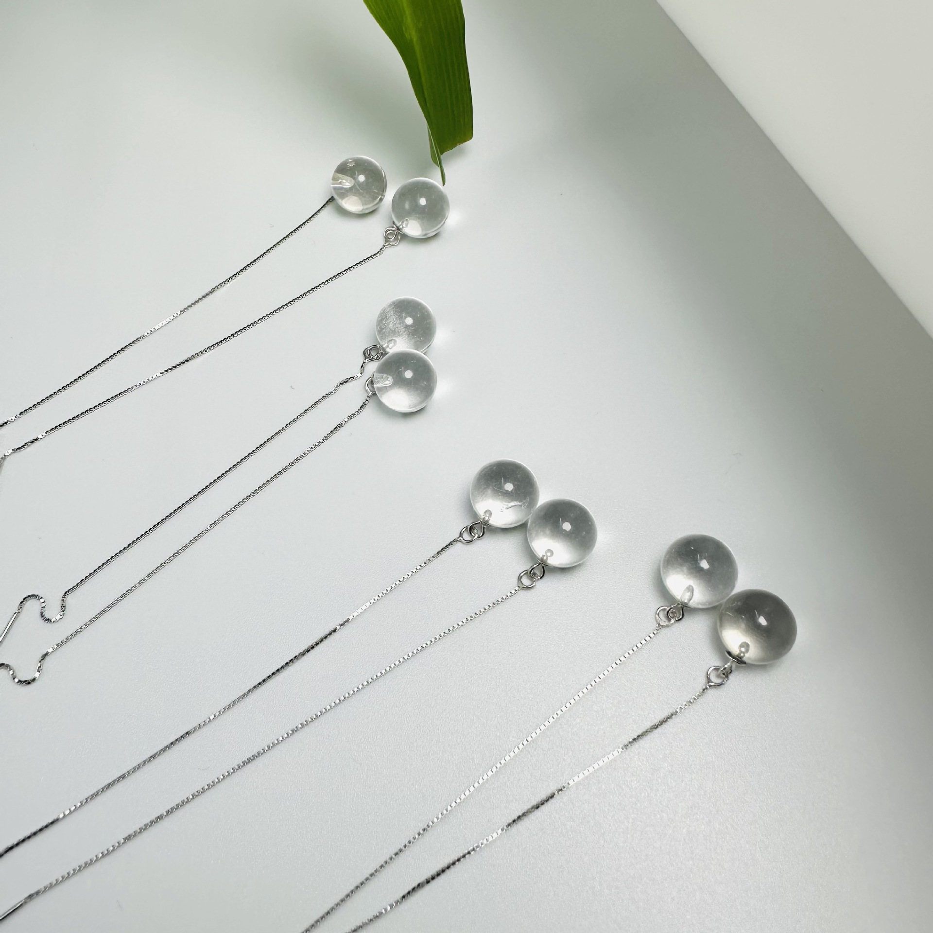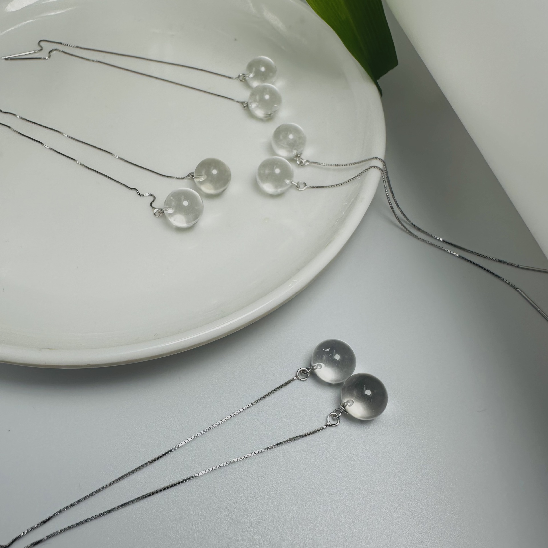 Серьги из круглых бусин из натурального белого кристалла, характеристики голых бусин: около 8 мм.