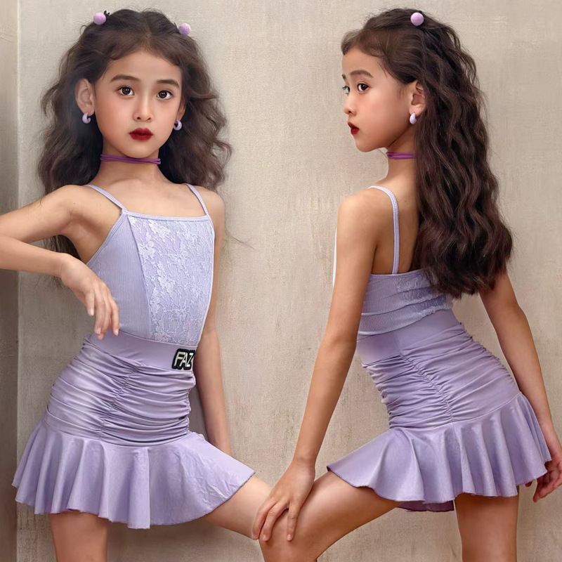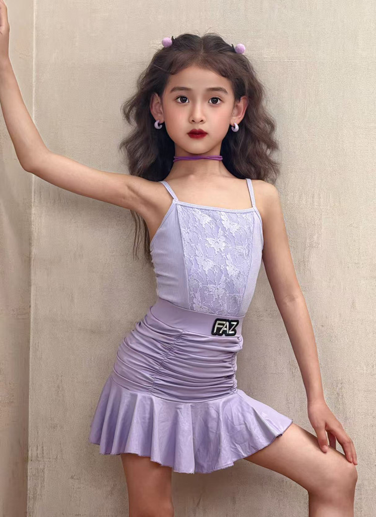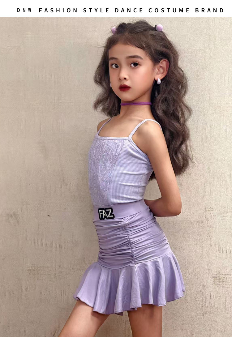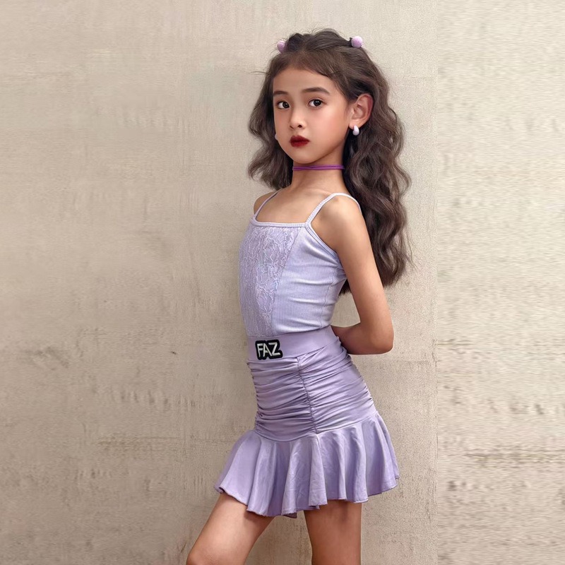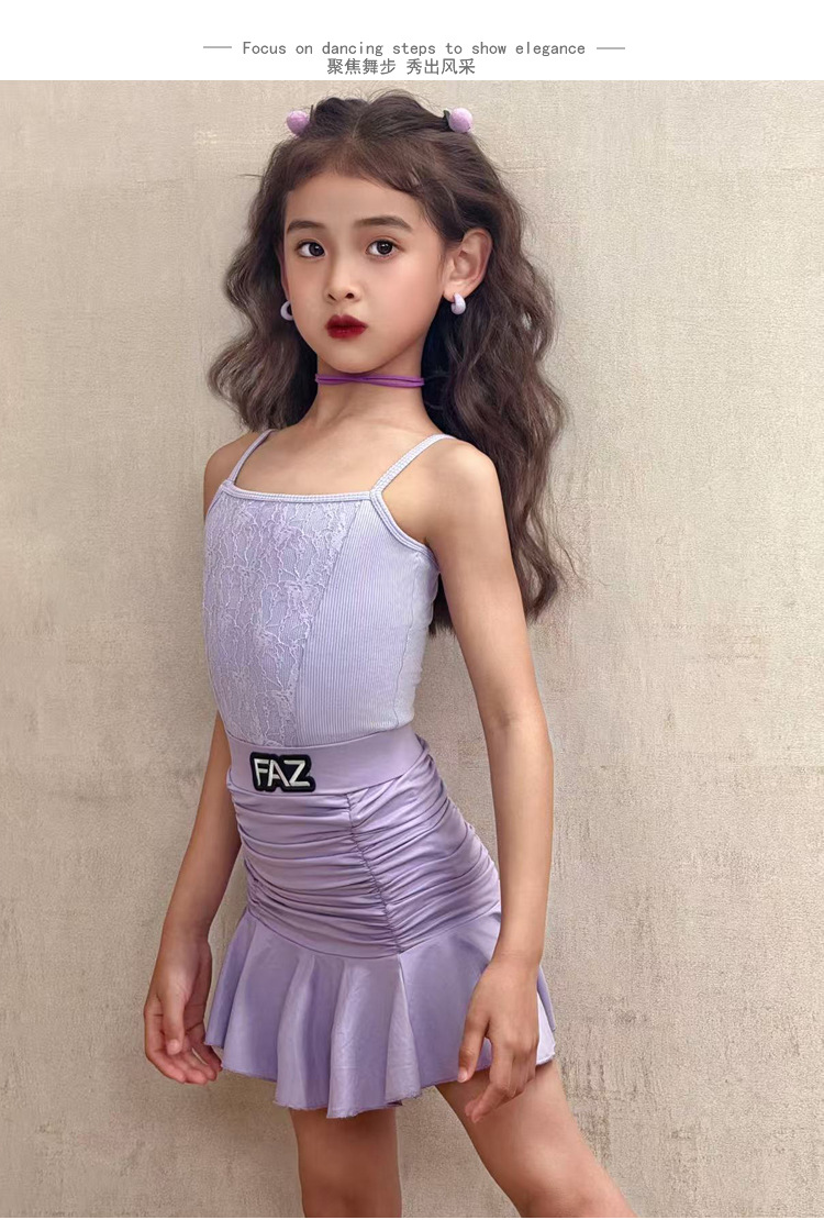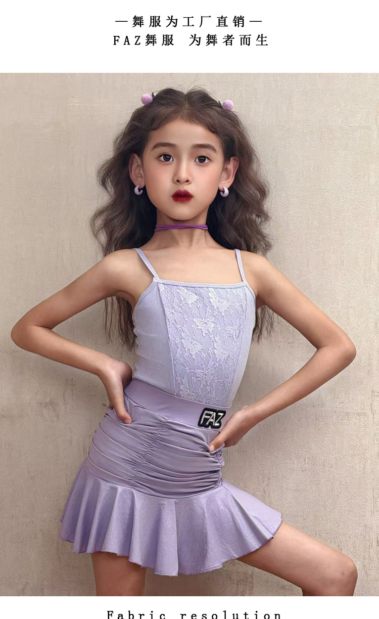 FAZ Одежда для латинских танцев, новая детская высококачественная тренировочная одежда для девочек, профессиональная тренировочная одежда для выступлений, танцевальная юбка на подтяжках