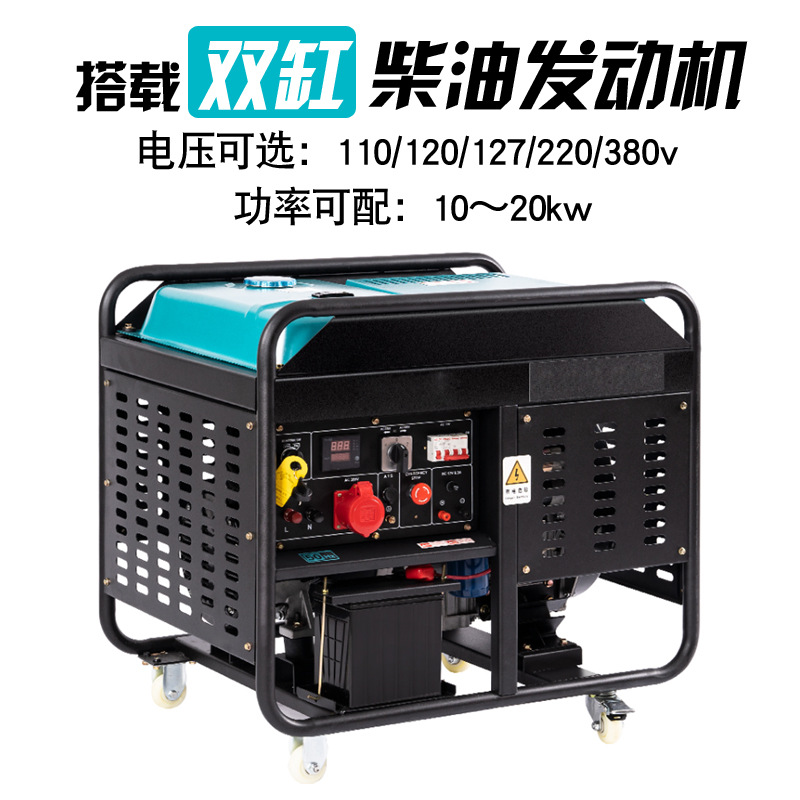 Дизельный генератор 10~20 кВт, малый мобильный 12 кВт однофазный портативный 15 кВт трехфазный 380 В двойное напряжение для строительных площадок и шахт