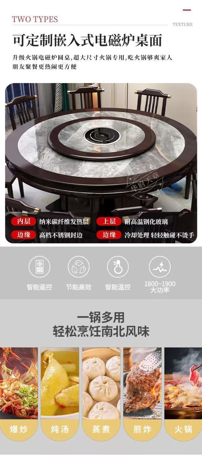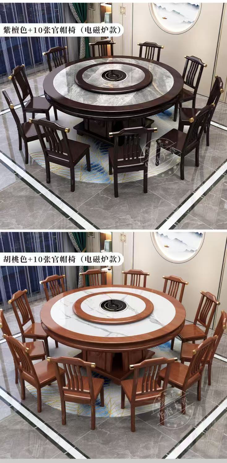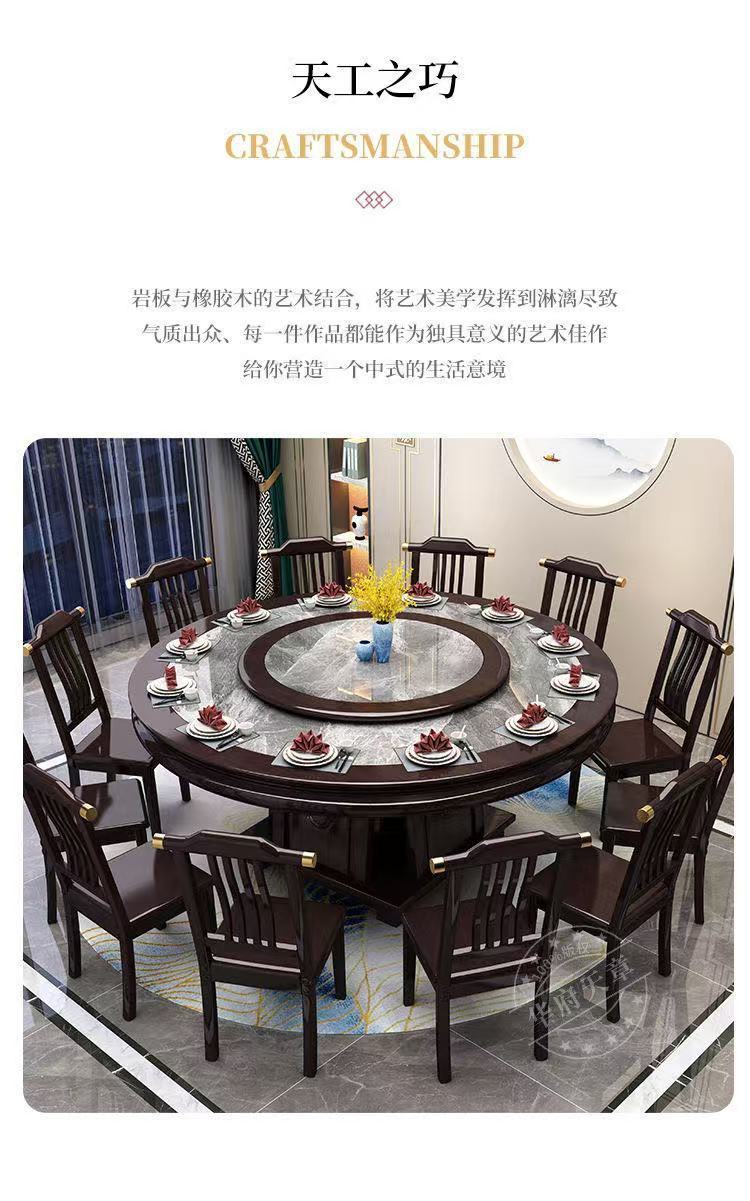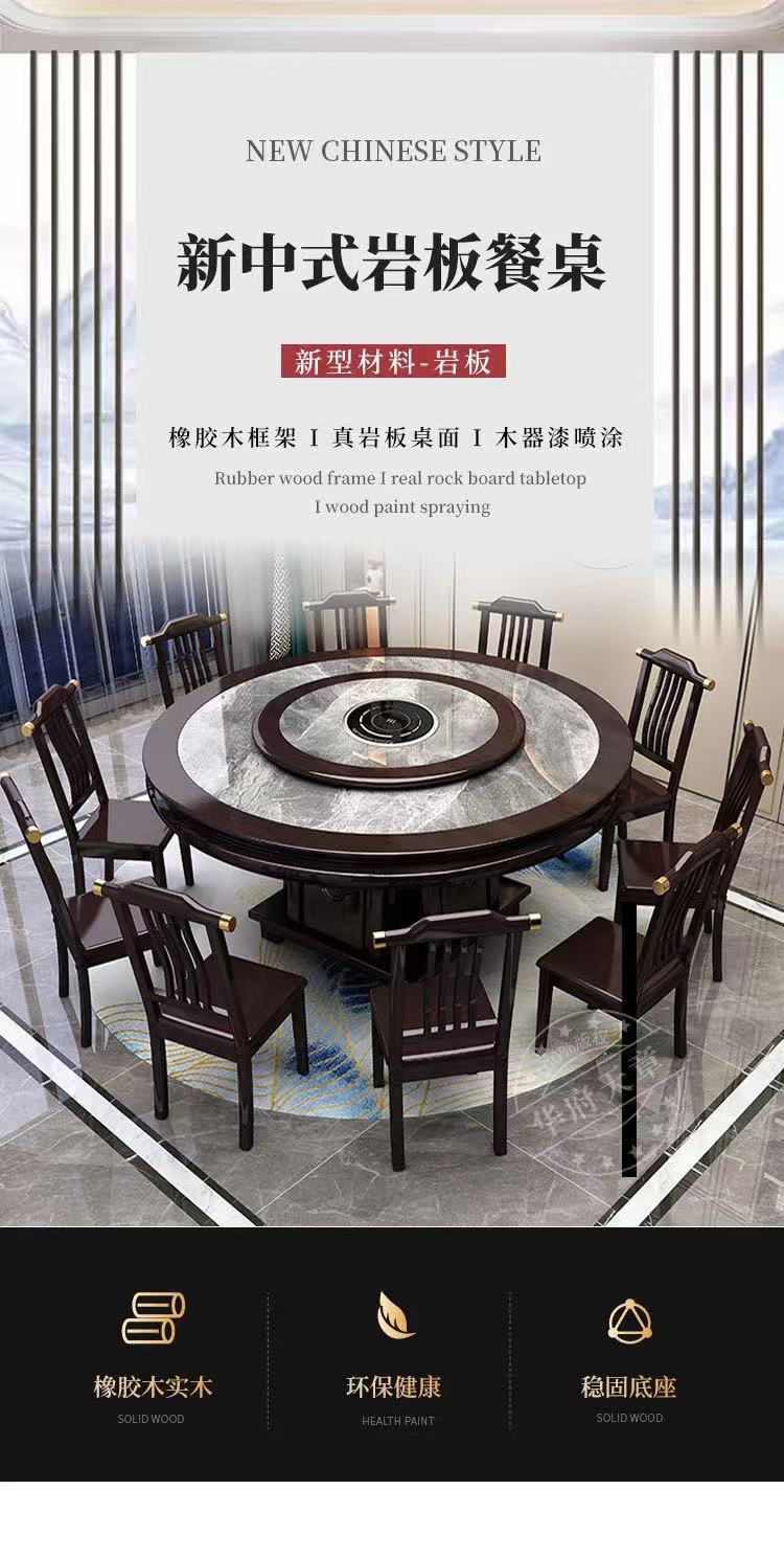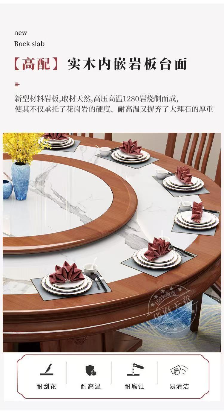 Китайский обеденный стол из сланца, комбинация обеденного стола и стула, круглый стол из цельного дерева для дома, отеля, поворотный стол, индукционная плита, обеденный стол, круглый стол для отеля