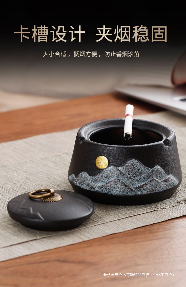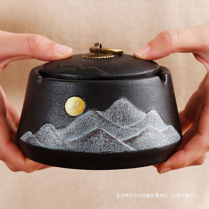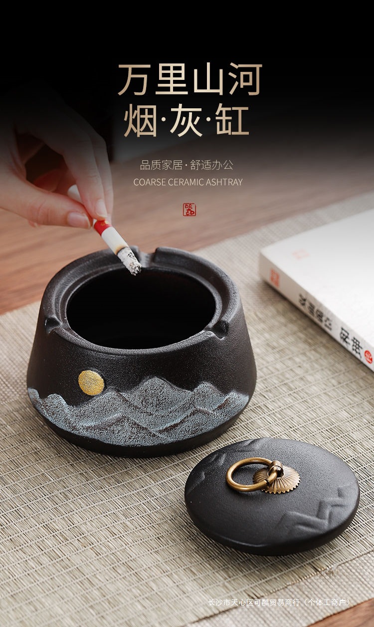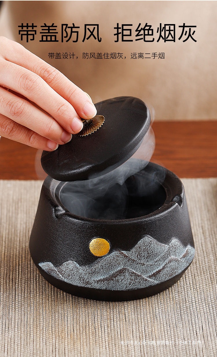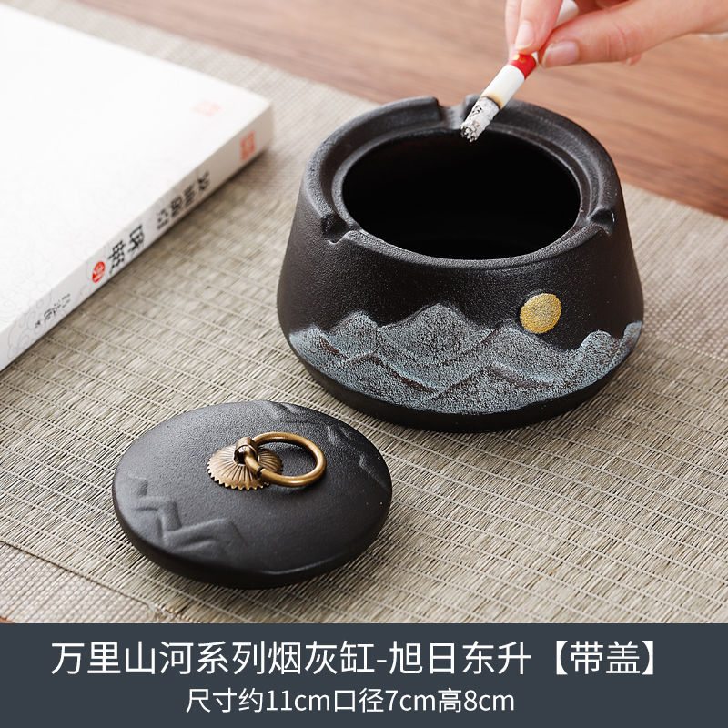 Легкая роскошная пепельница, черная керамика, креативная керамическая чашка для сигарет, B&B, отель, домашняя гостиная, чайный столик, ветрозащитная пепельница с крышкой
