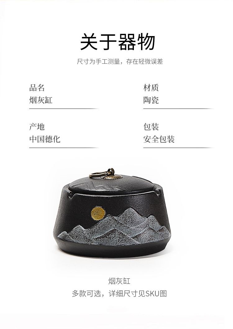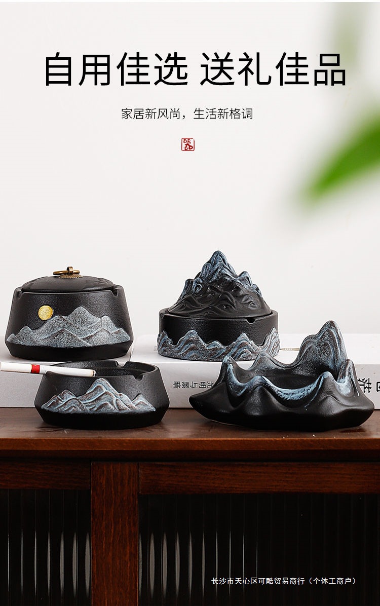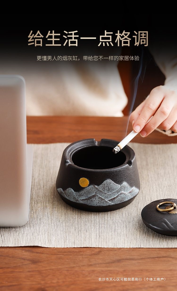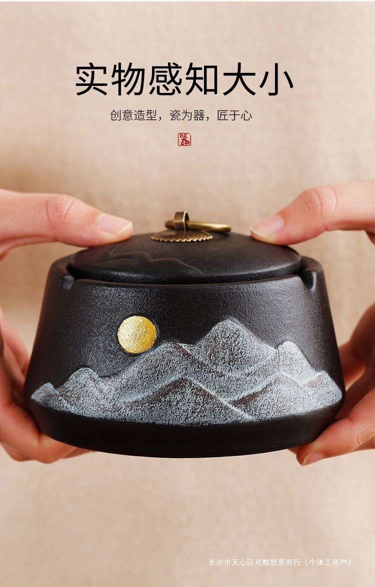 Легкая роскошная пепельница, черная керамика, креативная керамическая чашка для сигарет, B&B, отель, домашняя гостиная, чайный столик, ветрозащитная пепельница с крышкой