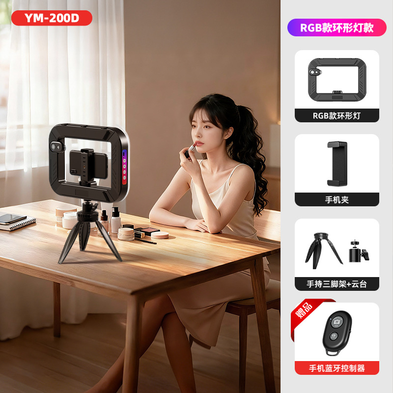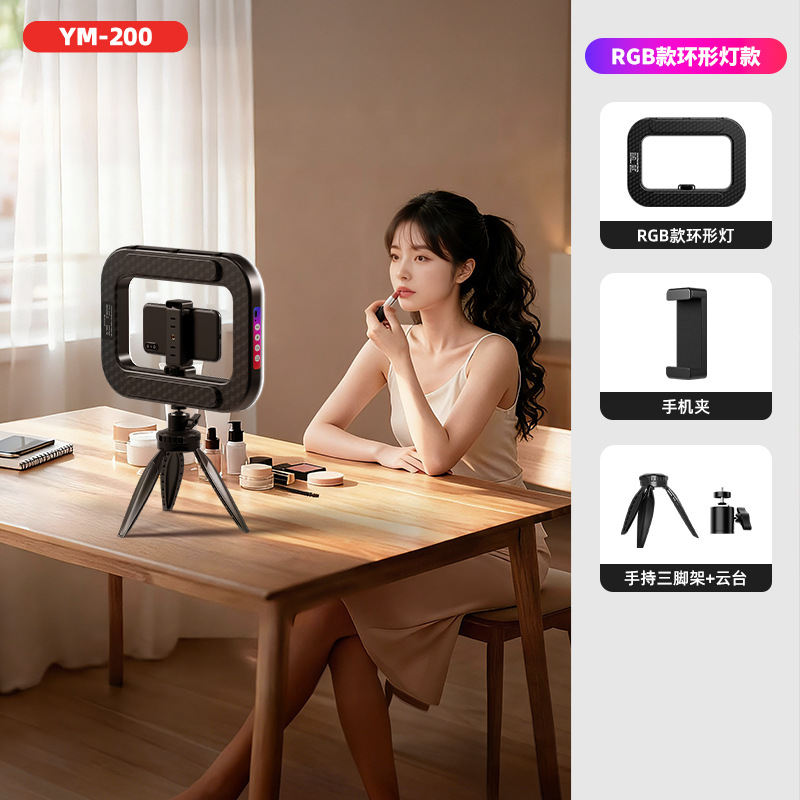 [Производитель источника] YM-200 ручной кольцевой заполняющий светильник RGB кольцевой светильник заполняющий светильник для мобильного телефона для съемки