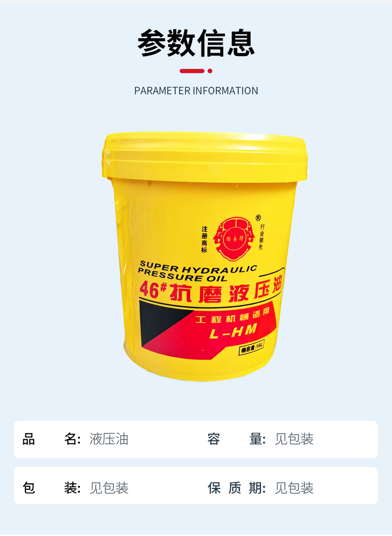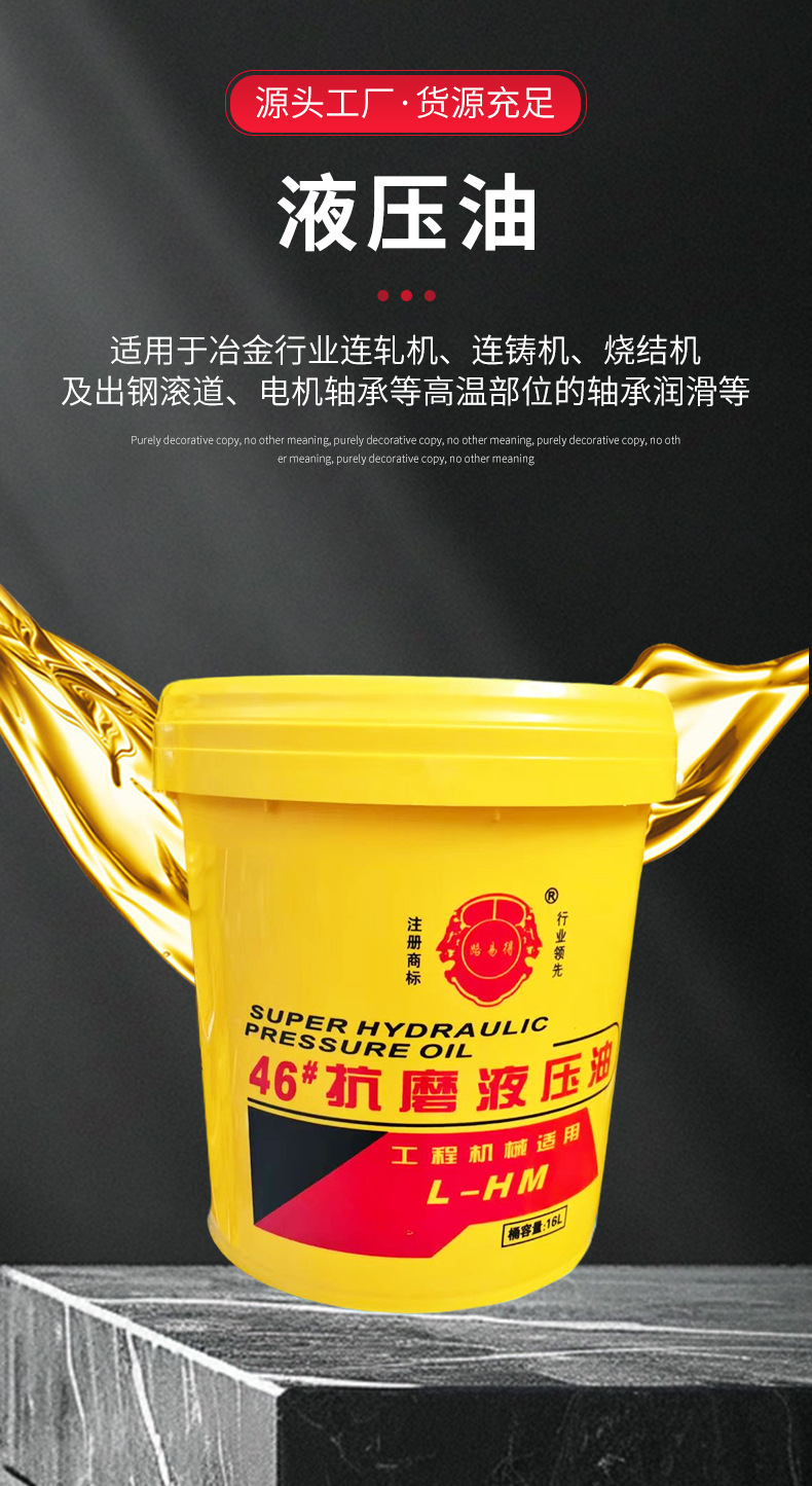 Антиизносное гидравлическое масло № 46, высокого давления, беззольное, промышленного класса, специально разработанное для высокотемпературной стойкости, из тщательно отобранных материалов, специализированное гидравлическое масло.
