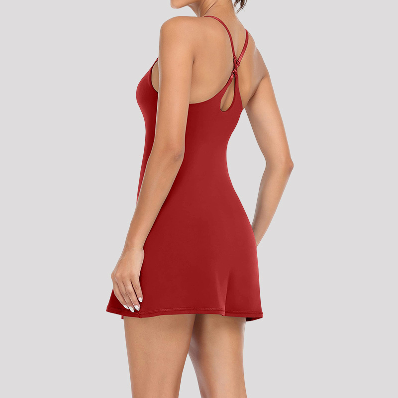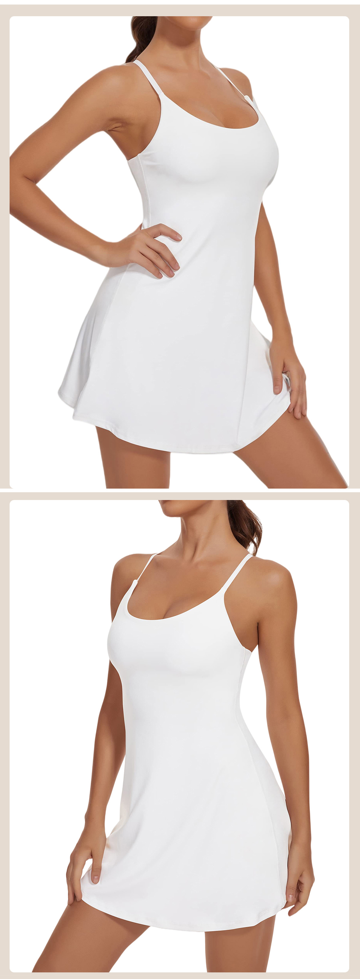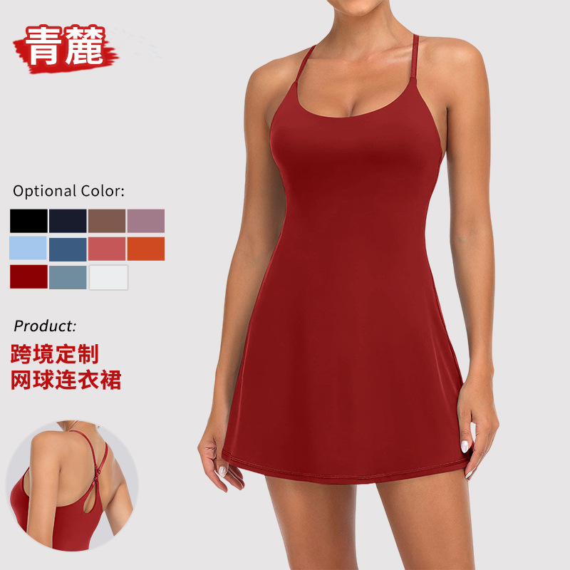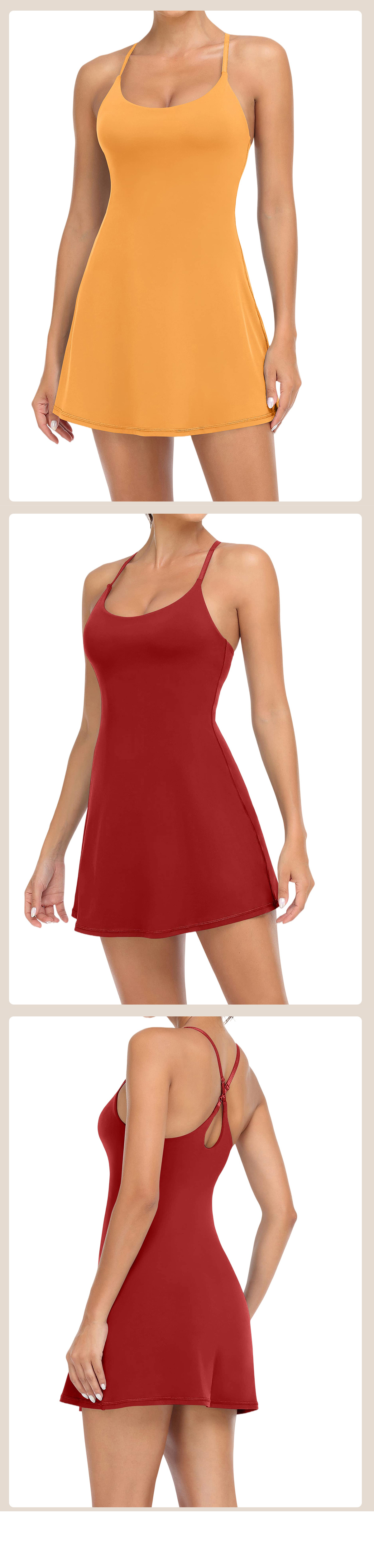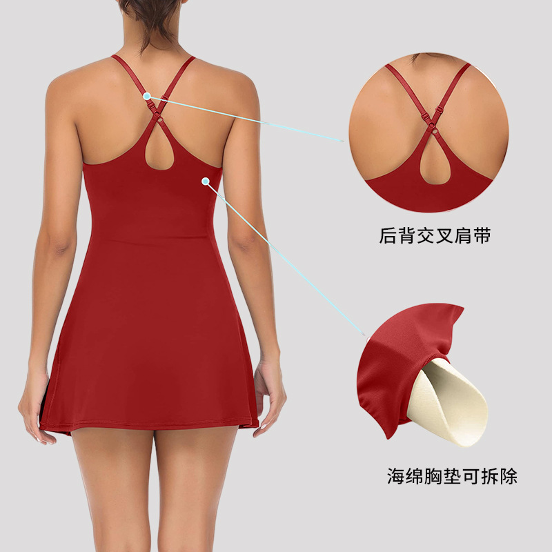 Прямые поставки с фабрики: спортивное платье с эффектом второй кожи, быстросохнущее, со съемными чашечками, летнее, хит продаж на Amazon, теннисное платье, имитация двух частей.
