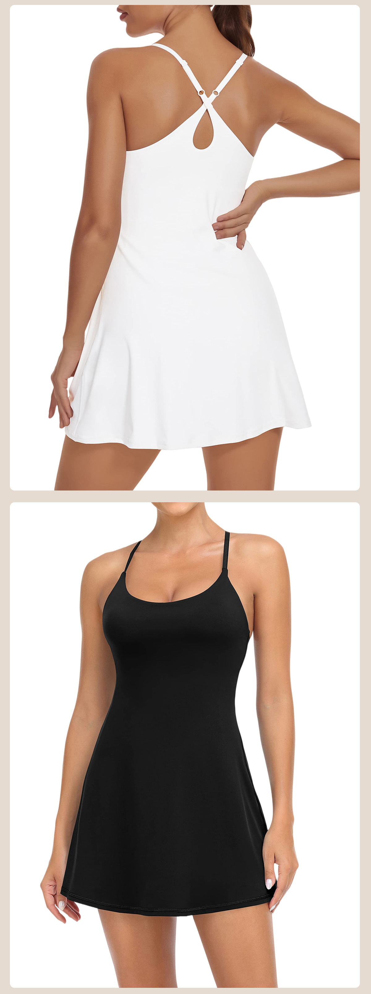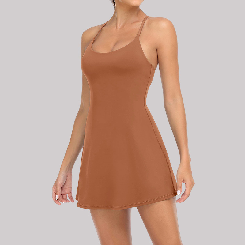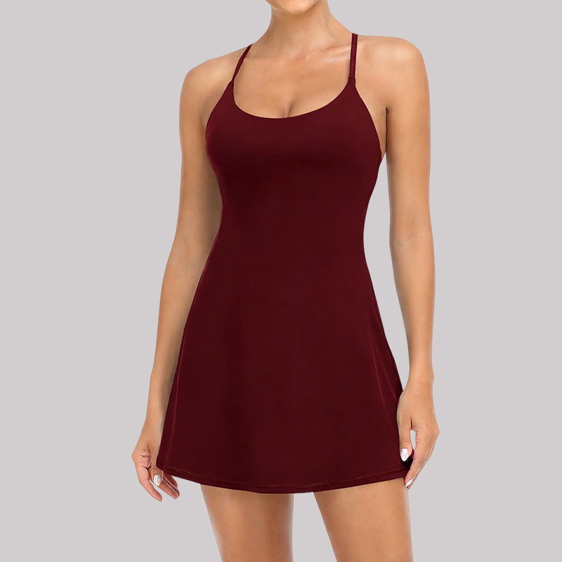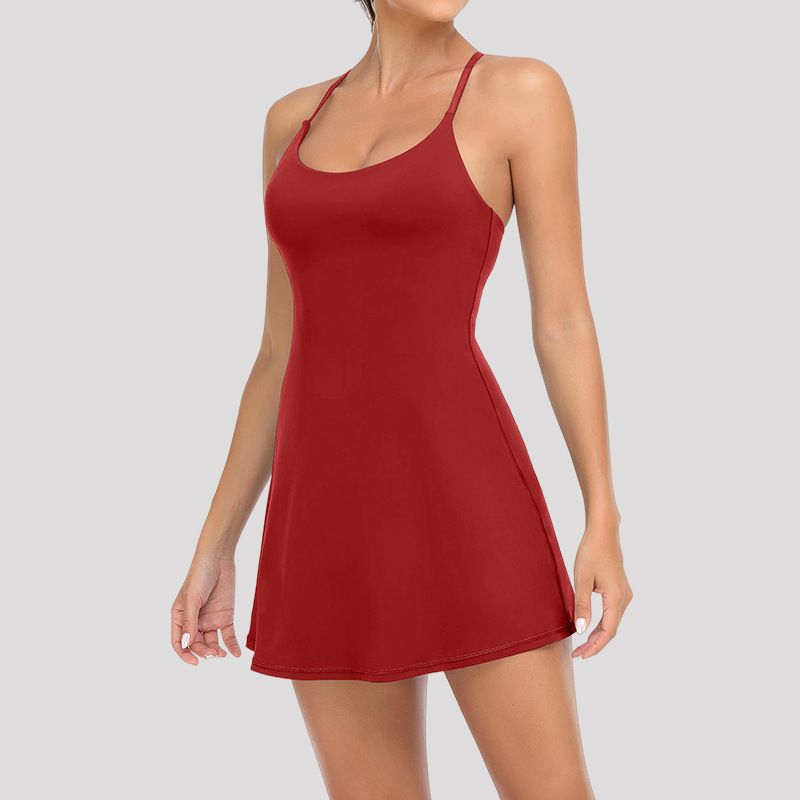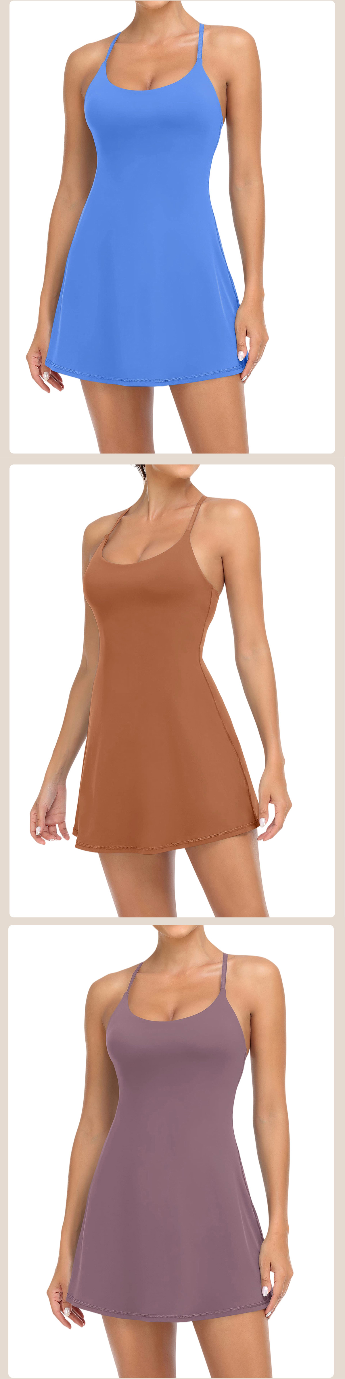 Прямые поставки с фабрики: спортивное платье с эффектом второй кожи, быстросохнущее, со съемными чашечками, летнее, хит продаж на Amazon, теннисное платье, имитация двух частей.