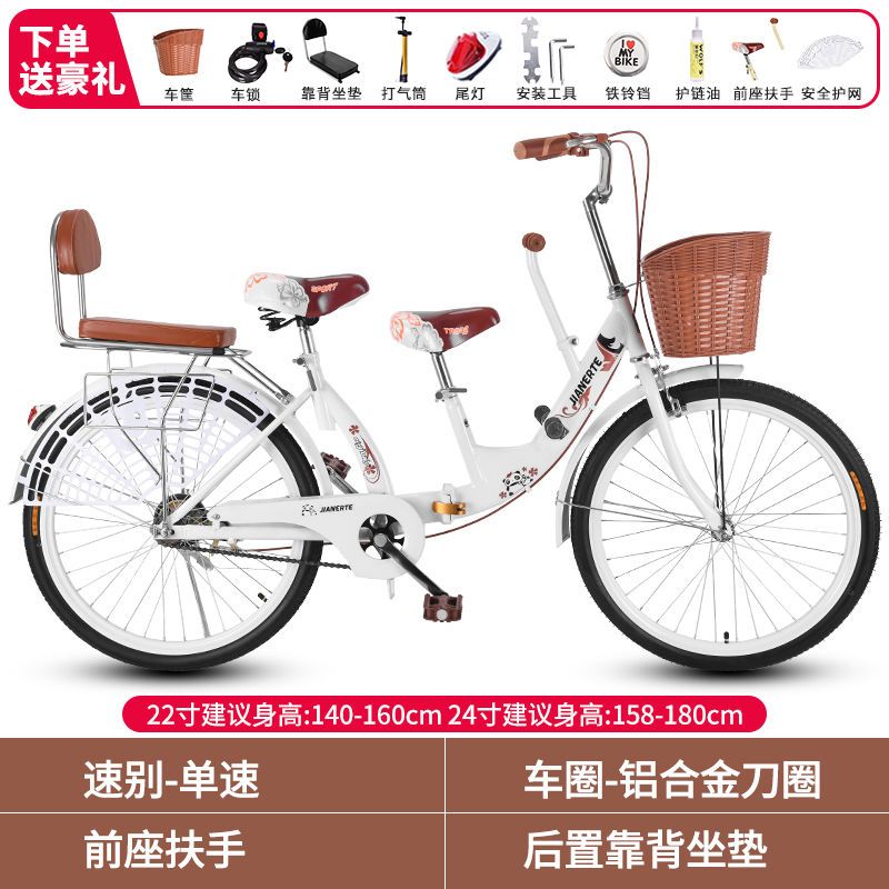 Женский велосипед с детским сиденьем, двойными передними и задними поручнями, складной для подвоза и вывоза детей, совместимый с детьми.