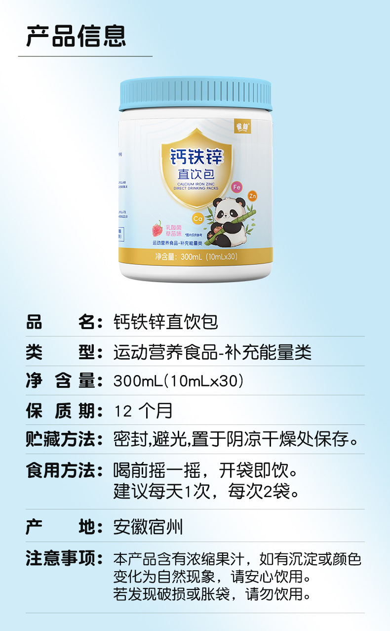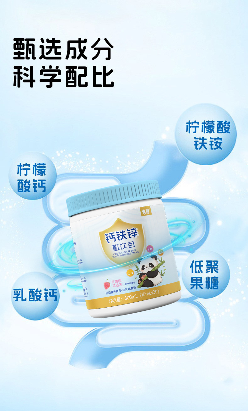 实力工厂钙铁锌直饮包代工儿童复合维生素营养包钙铁锌口服液批发