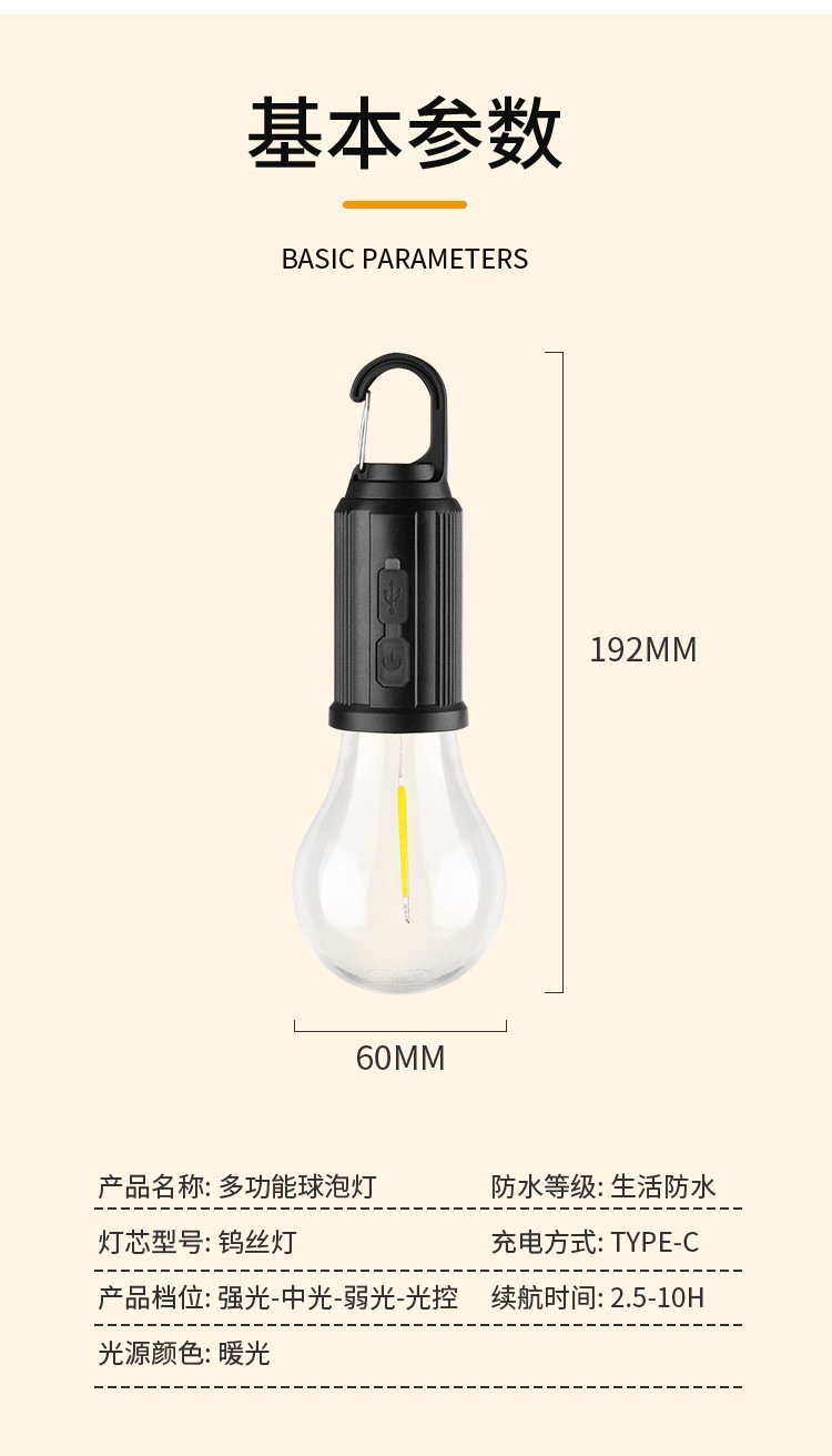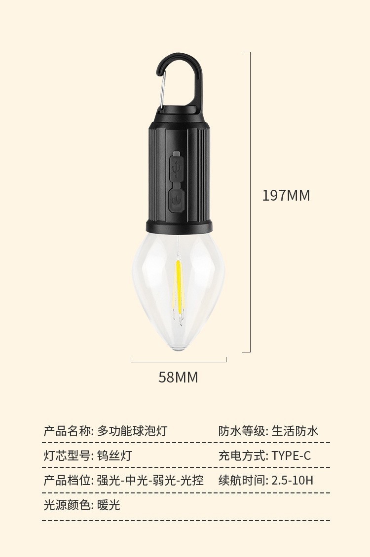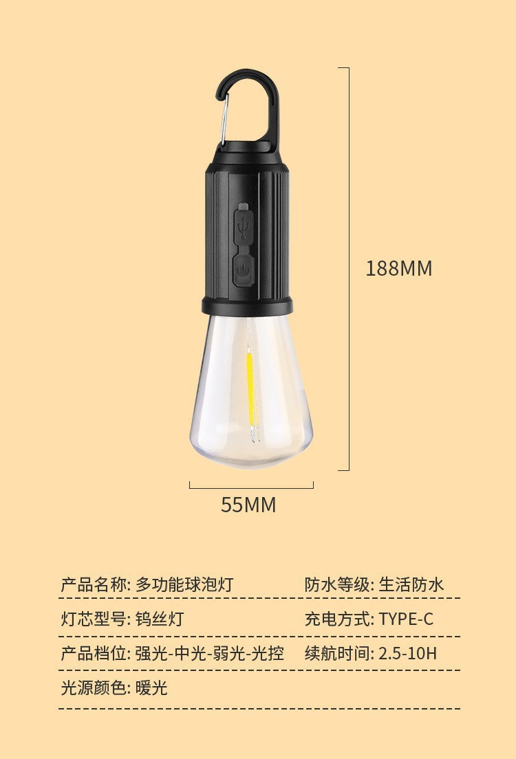Уличный солнечный светильник для кемпинга, бытовая лампочка, теплый свет, ретро-крючок, светильник для палатки, перезаряжаемый уличный светильник