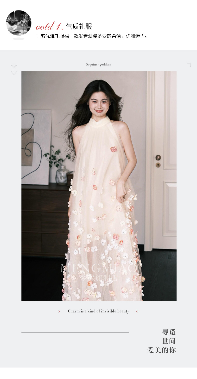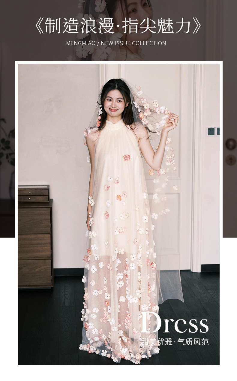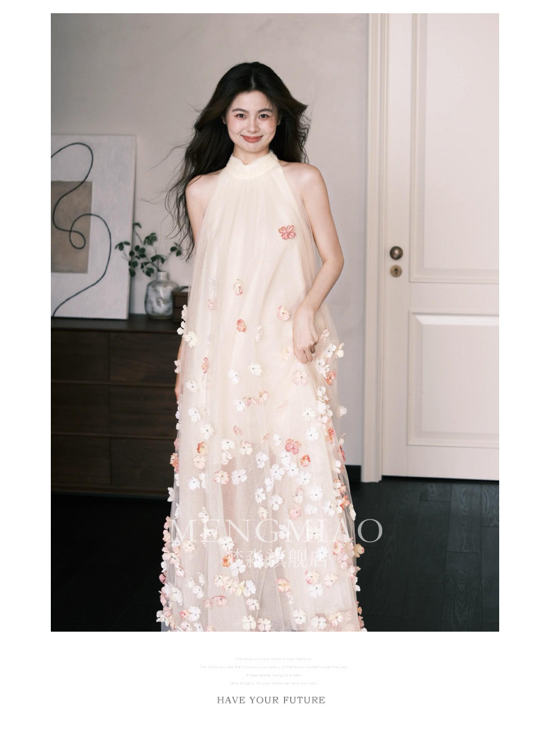 Сетчатое платье для женщин, лето 2026, без рукавов, с воротником-халтер, потрясающее свадебное платье, платье для помолвки с 3D цветочным узором, свободный крой