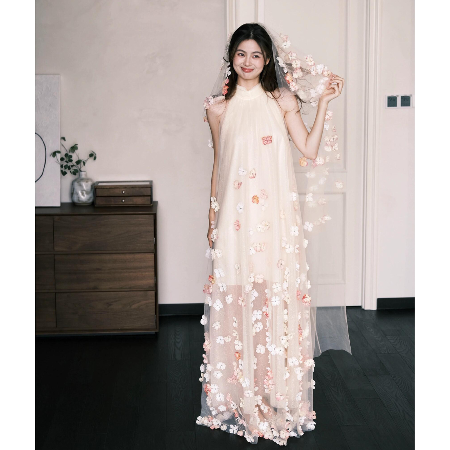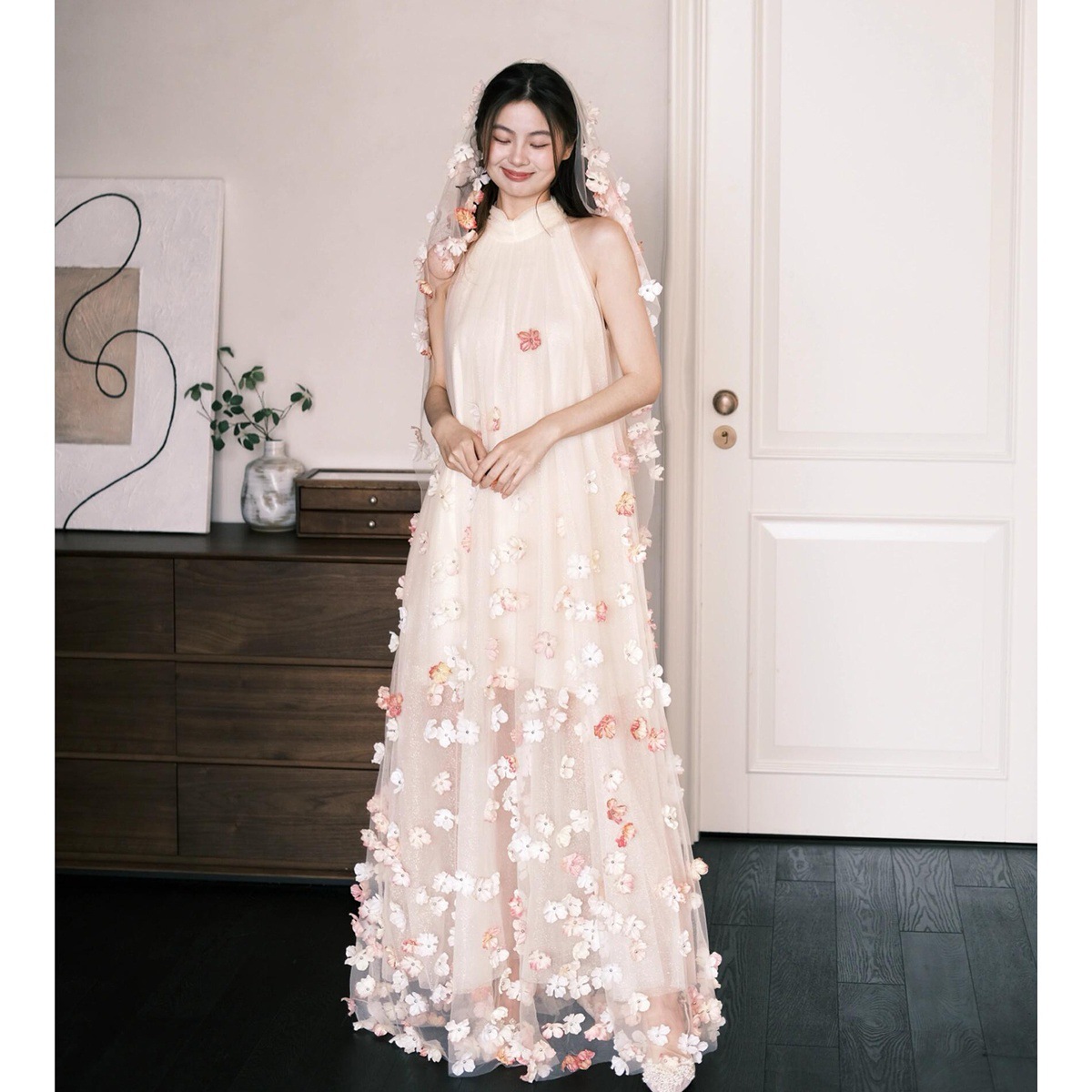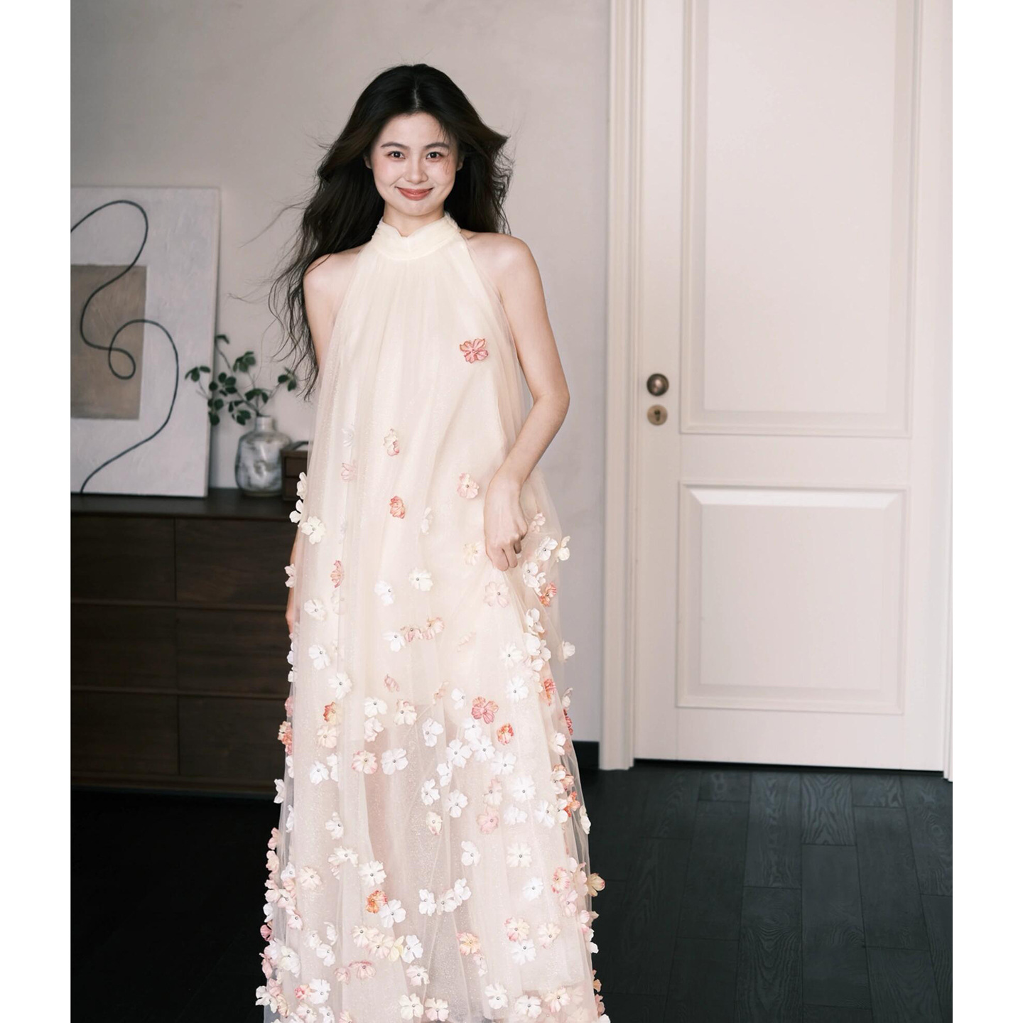 Сетчатое платье для женщин, лето 2026, без рукавов, с воротником-халтер, потрясающее свадебное платье, платье для помолвки с 3D цветочным узором, свободный крой