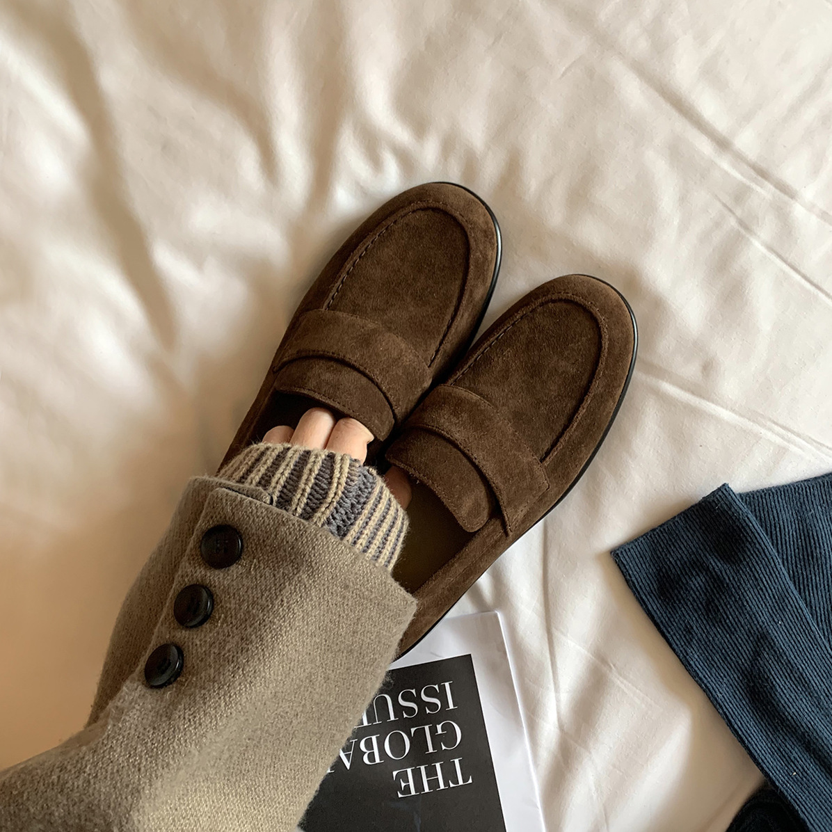 Версия из овчины ~ женские лоферы без шнуровки в британском стиле в стиле ретро, маленькие кожаные туфли на толстой подошве из натуральной кожи, туфли на плоской подошве