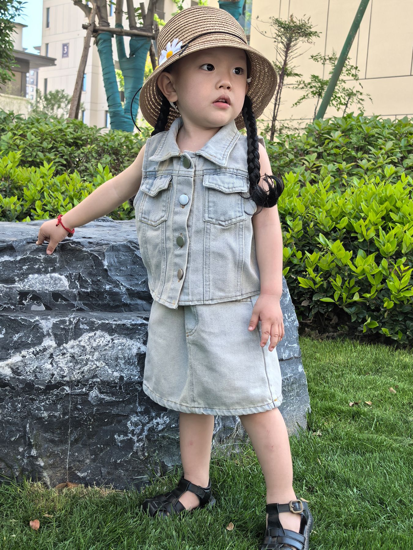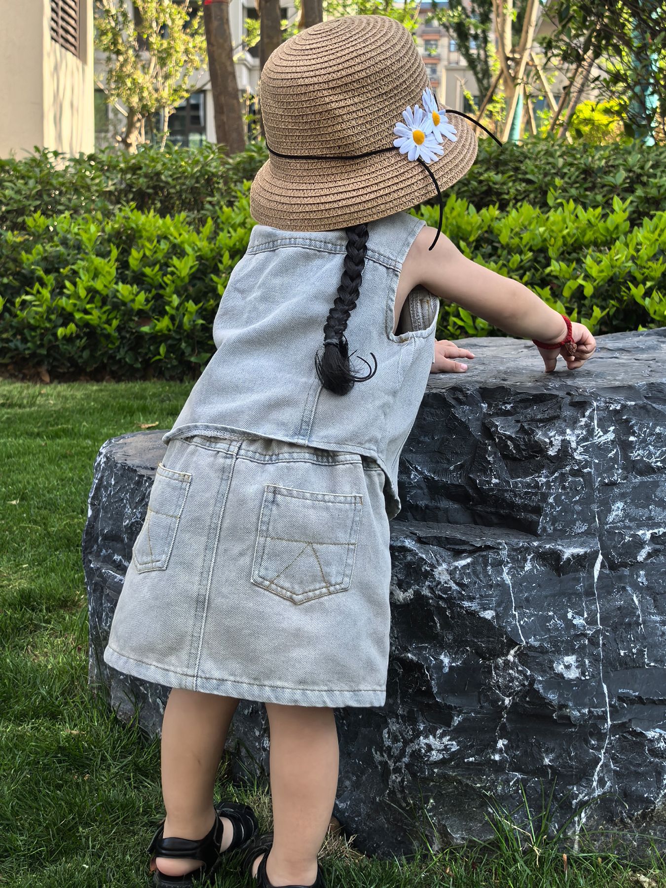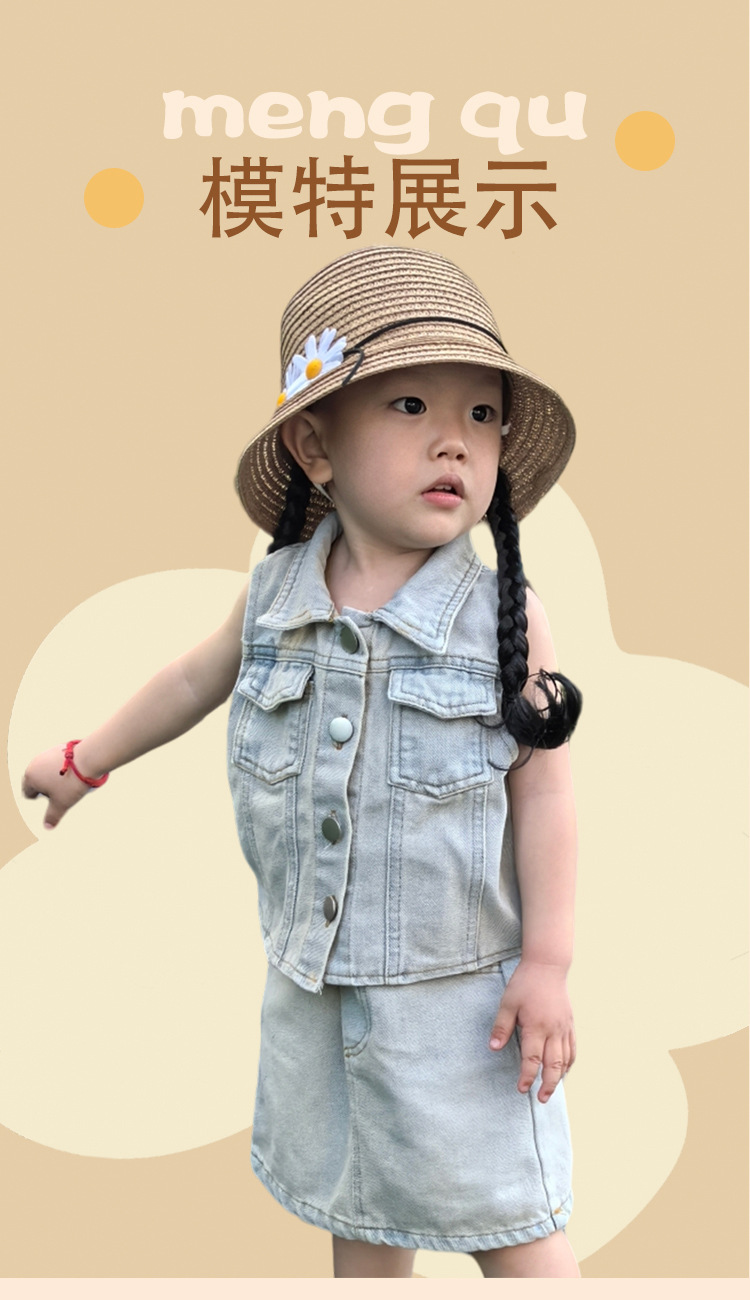 Летний модный комплект для девочек 2025: стильный детский трендовый набор из джинсовой юбки и короткого топа для больших девочек в стиле интернет-знаменитостей