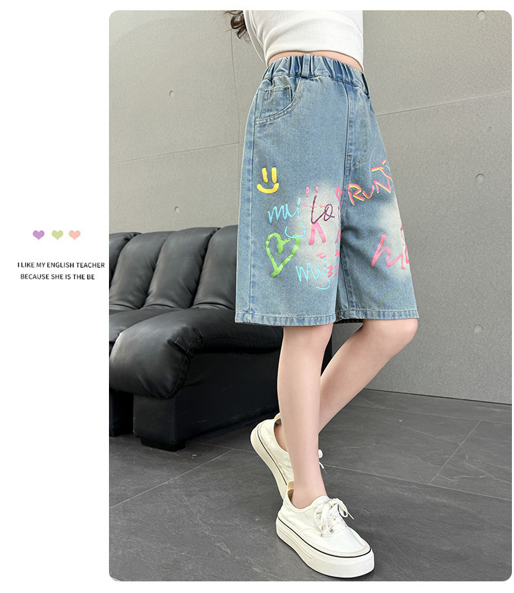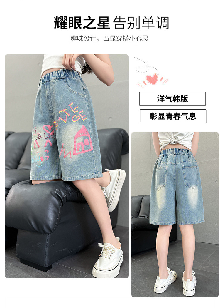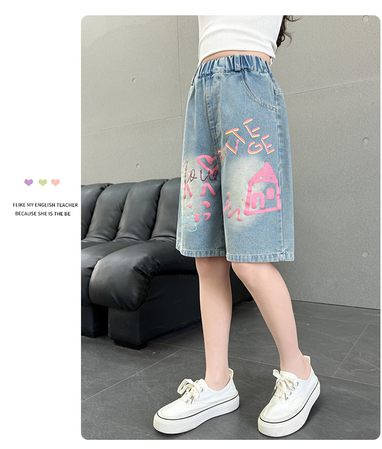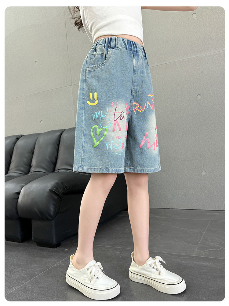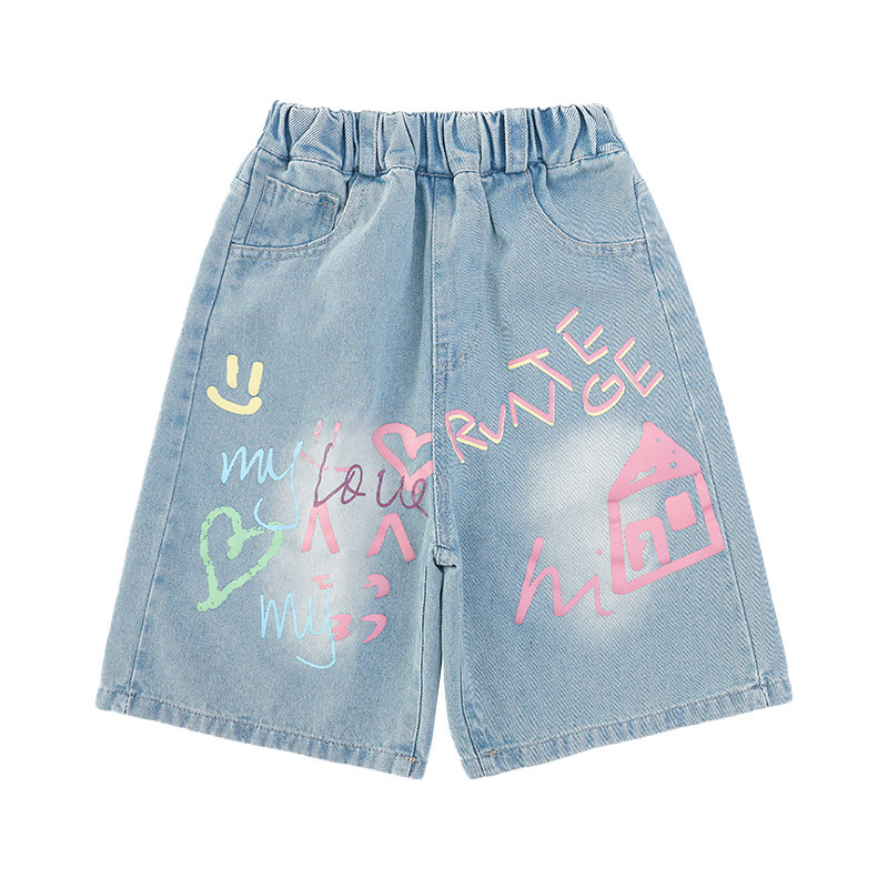 Новые летние модные универсальные джинсовые шорты с героями мультфильмов для девочек, свободный крой, тонкий стиль.