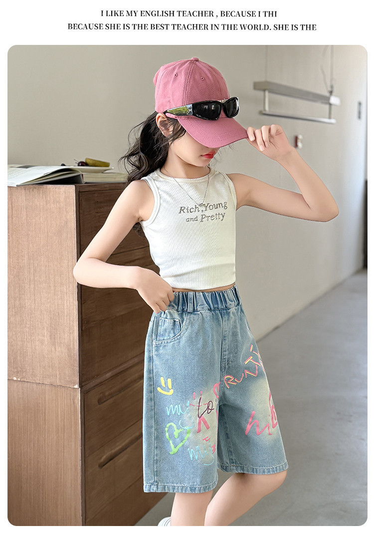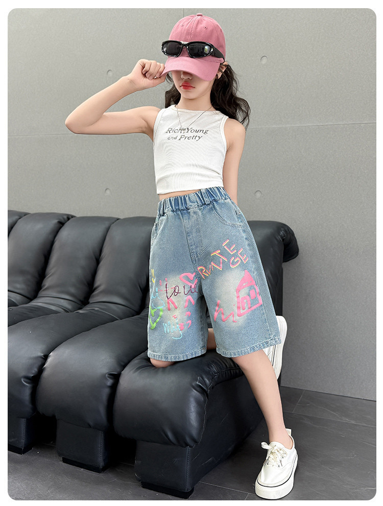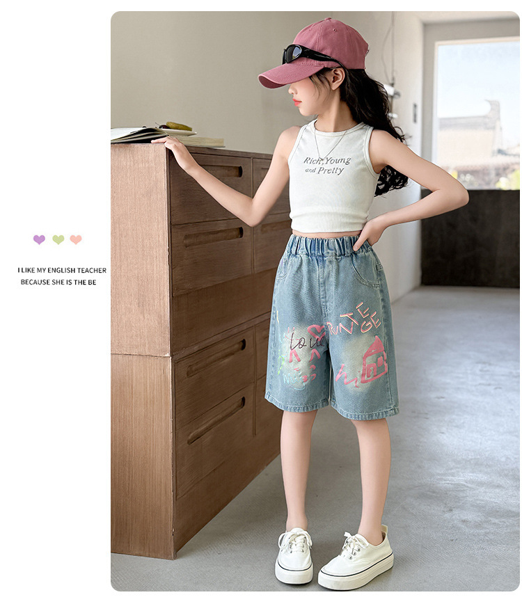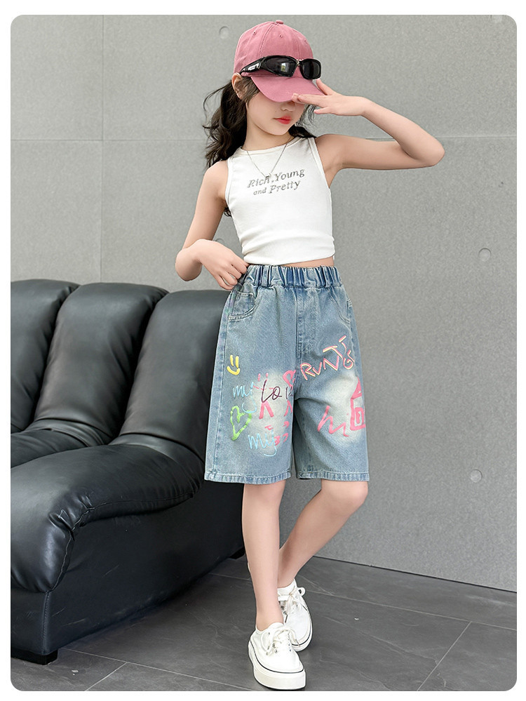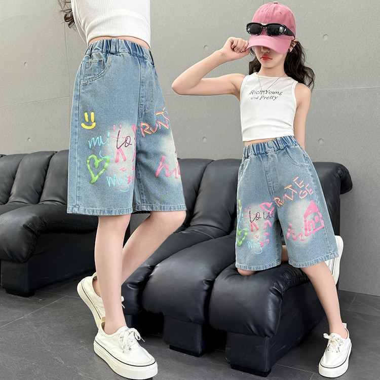Новые летние модные универсальные джинсовые шорты с героями мультфильмов для девочек, свободный крой, тонкий стиль.