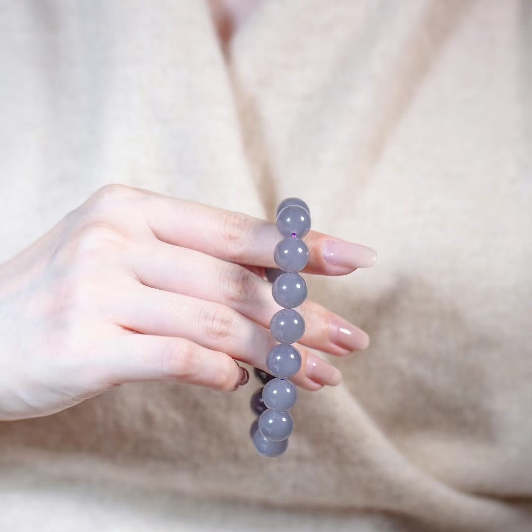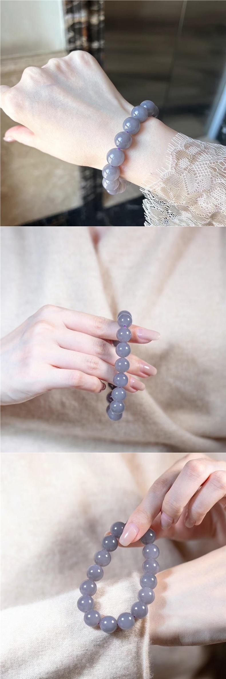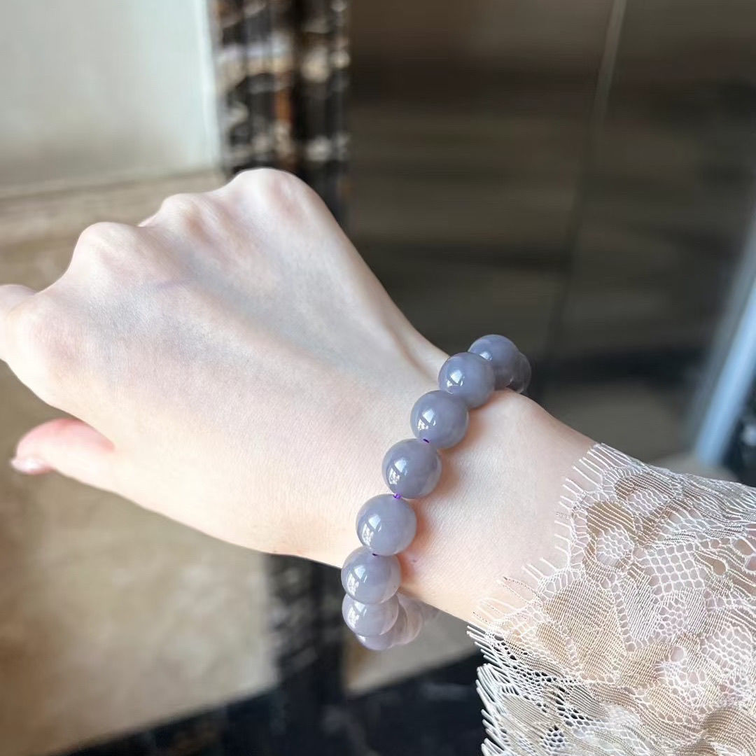 Оптовая продажа, браслет из натурального нефрита Хэтянь с сертификатом, круглые бусины, материал Цинхай, дымчатый нефрит, дымчатый фиолетовый нефрит Хэтянь
