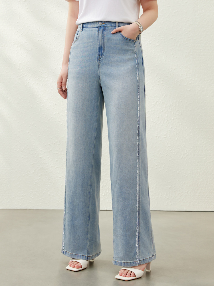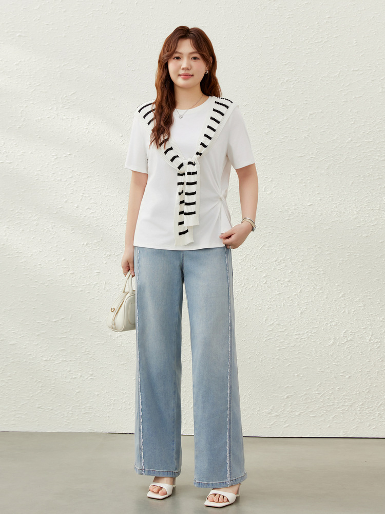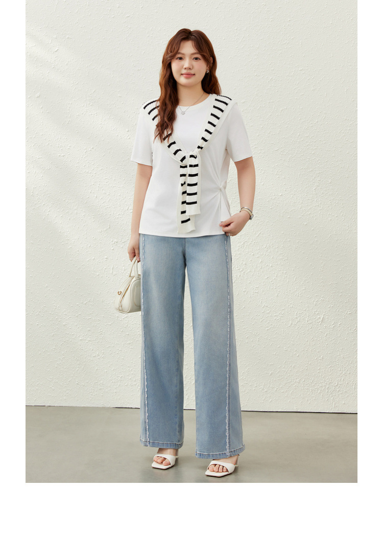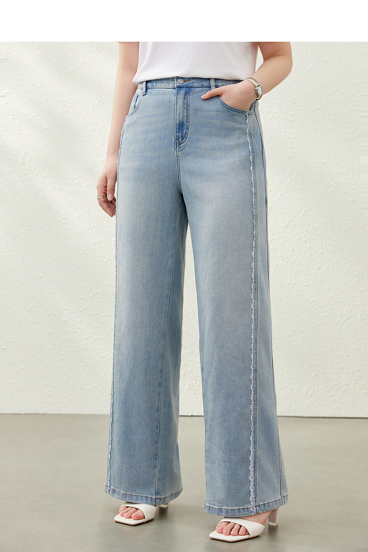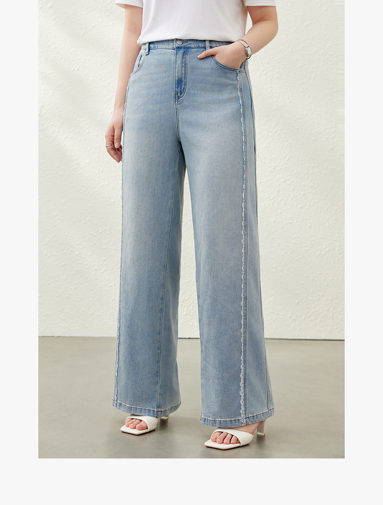 [Дизайнерские кружевные свободные универсальные джинсы для похудения] Женская одежда Slim Show больших размеров, толстая мм, 2025, летний новый стиль