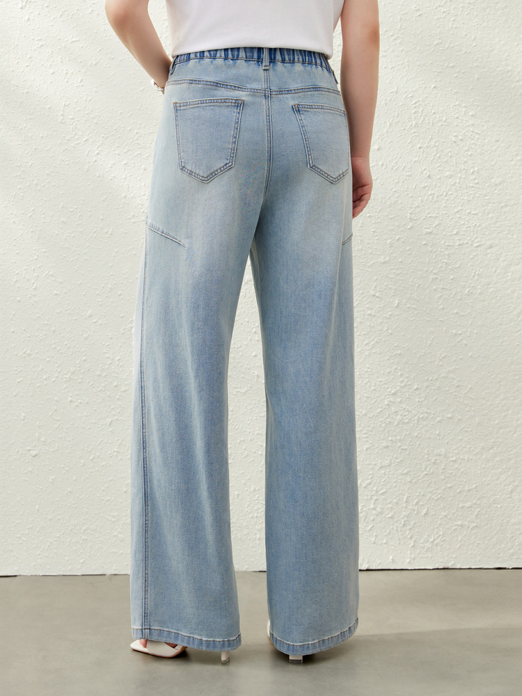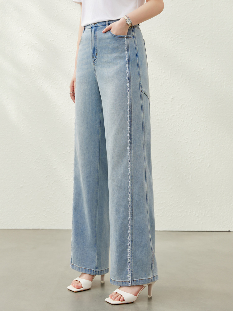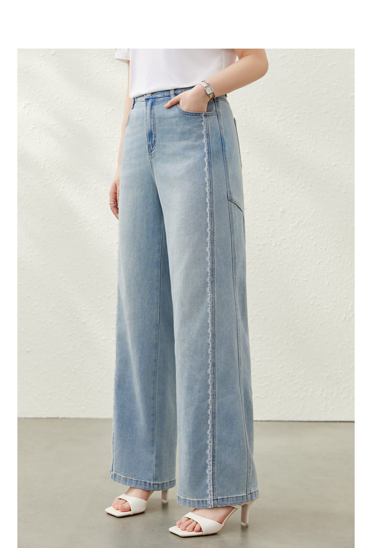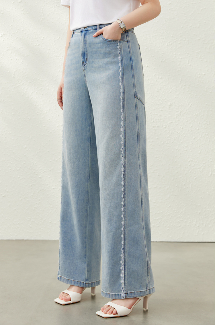 [Дизайнерские кружевные свободные универсальные джинсы для похудения] Женская одежда Slim Show больших размеров, толстая мм, 2025, летний новый стиль