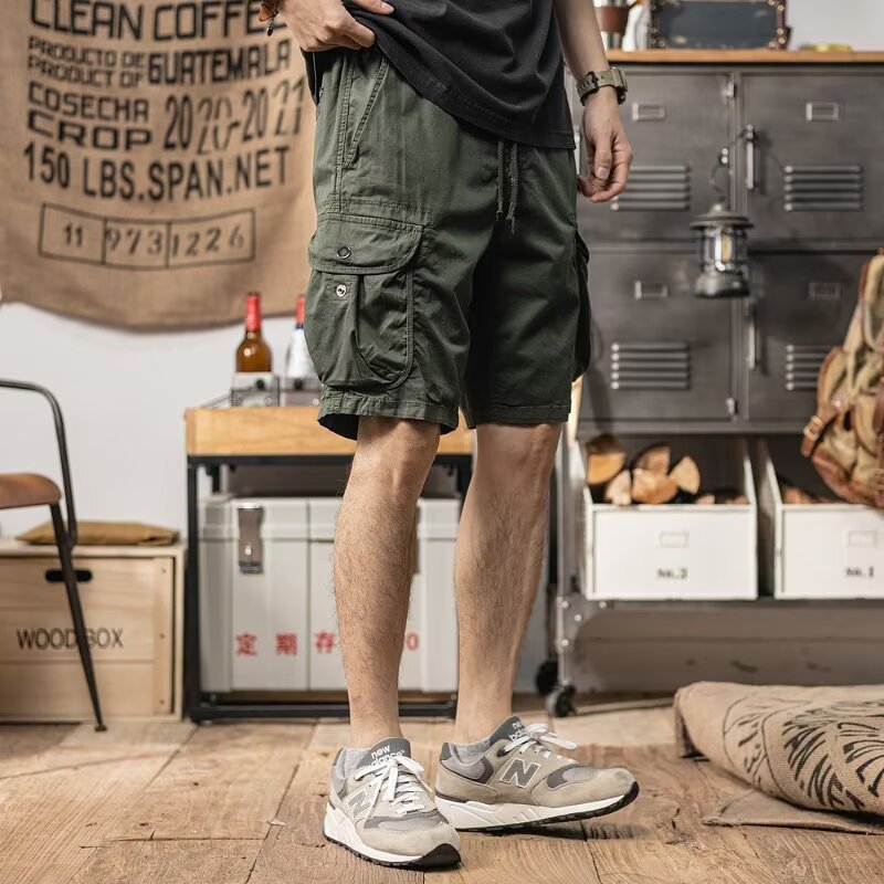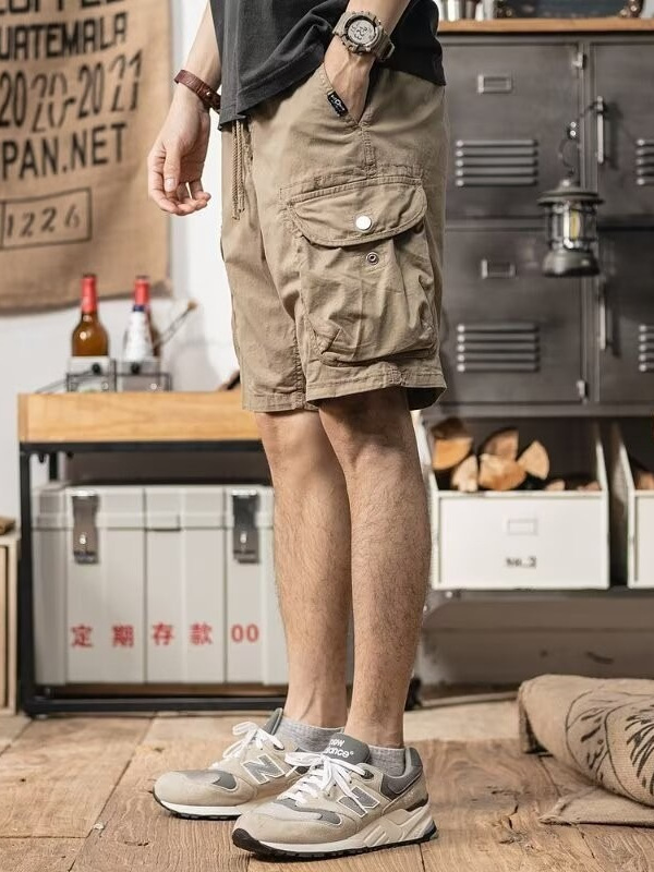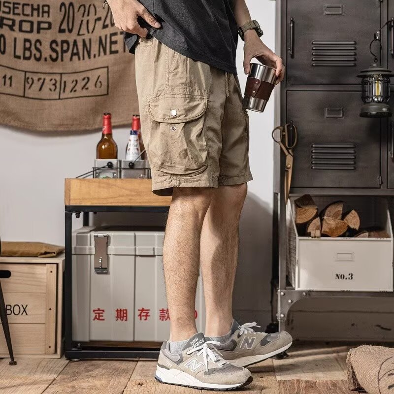 Тонкие шорты в американском стиле ретро, летние повседневные универсальные повседневные брюки-карго средней длины, свободные прямые модные брендовые мужские брюки