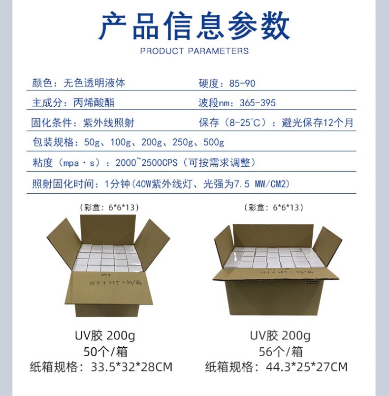 УФ-клей 30 г (одна бутылка); УФ-клей 50 г (одна бутылка); УФ-клей 100 г (одна бутылка); УФ-клей 200 г (одна бутылка); УФ-клей 500 г (одна бутылка); УФ-клей 30 г (цветная коробка); УФ-клей 50 г (цветная коробка); УФ-клей 100 г (цветная коробка); УФ-клей 200 г (цветная коробка); УФ-клей 500 г (цветная коробка); УФ-клей 1000 г (поставляется без этикетки)