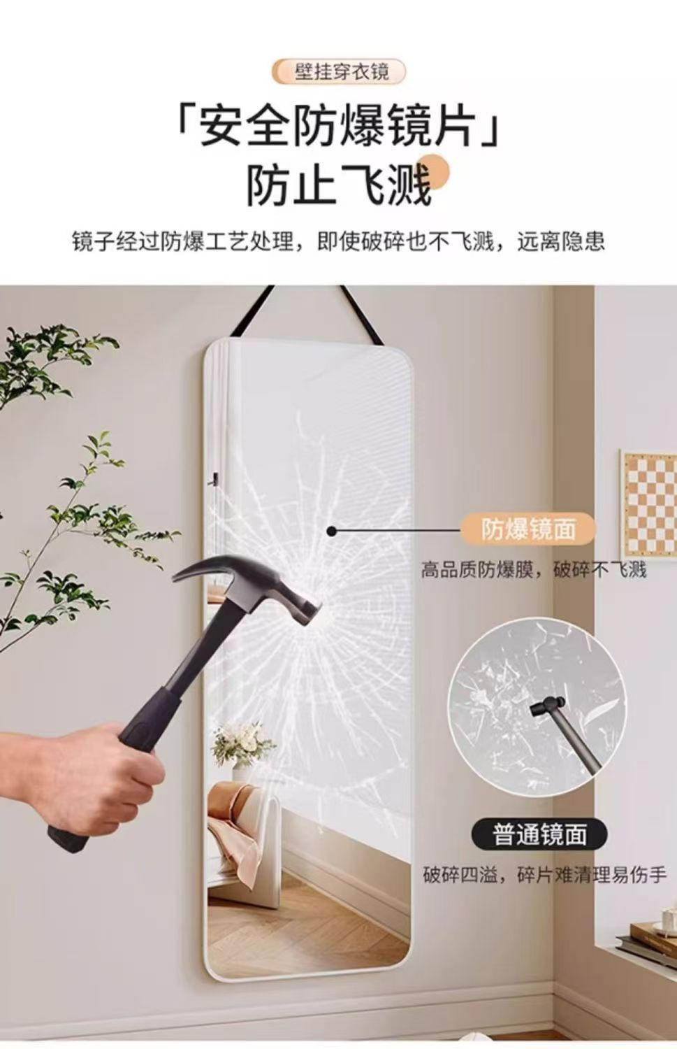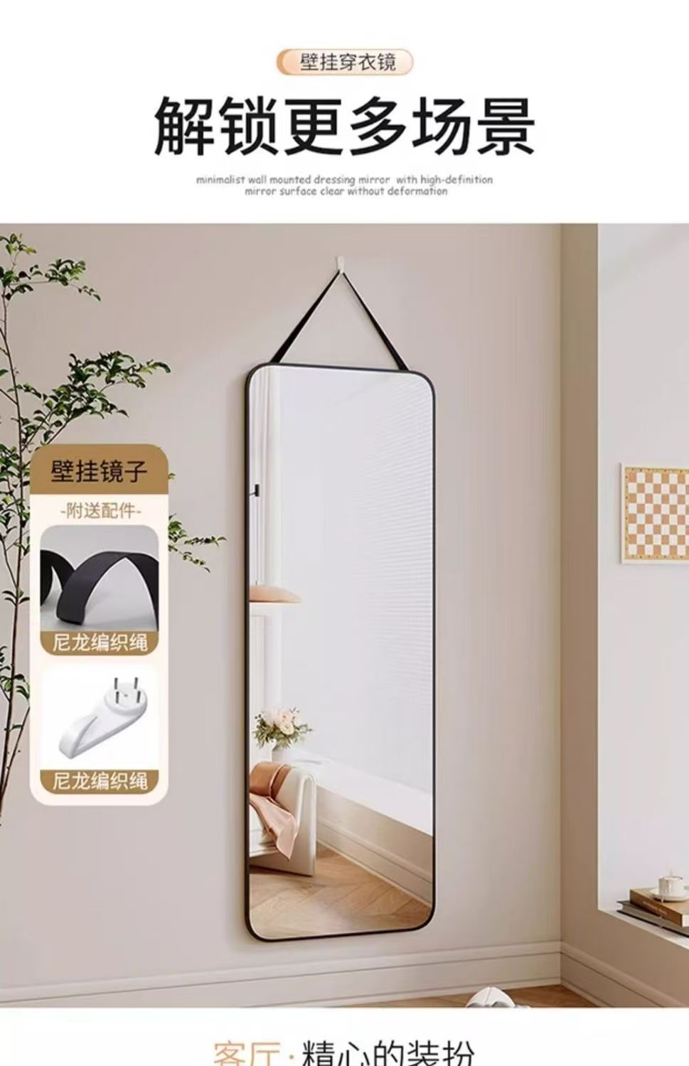 Зеркало в полный рост, зеркало для дома, гардеробное зеркало, настенный крючок, бесшовный ремешок, быстрое и удобное, ультра-четкое зеркало высокой четкости 4K