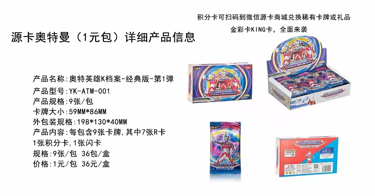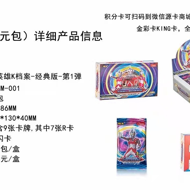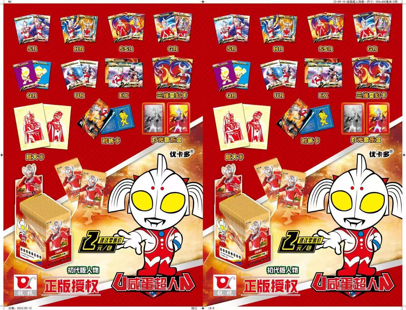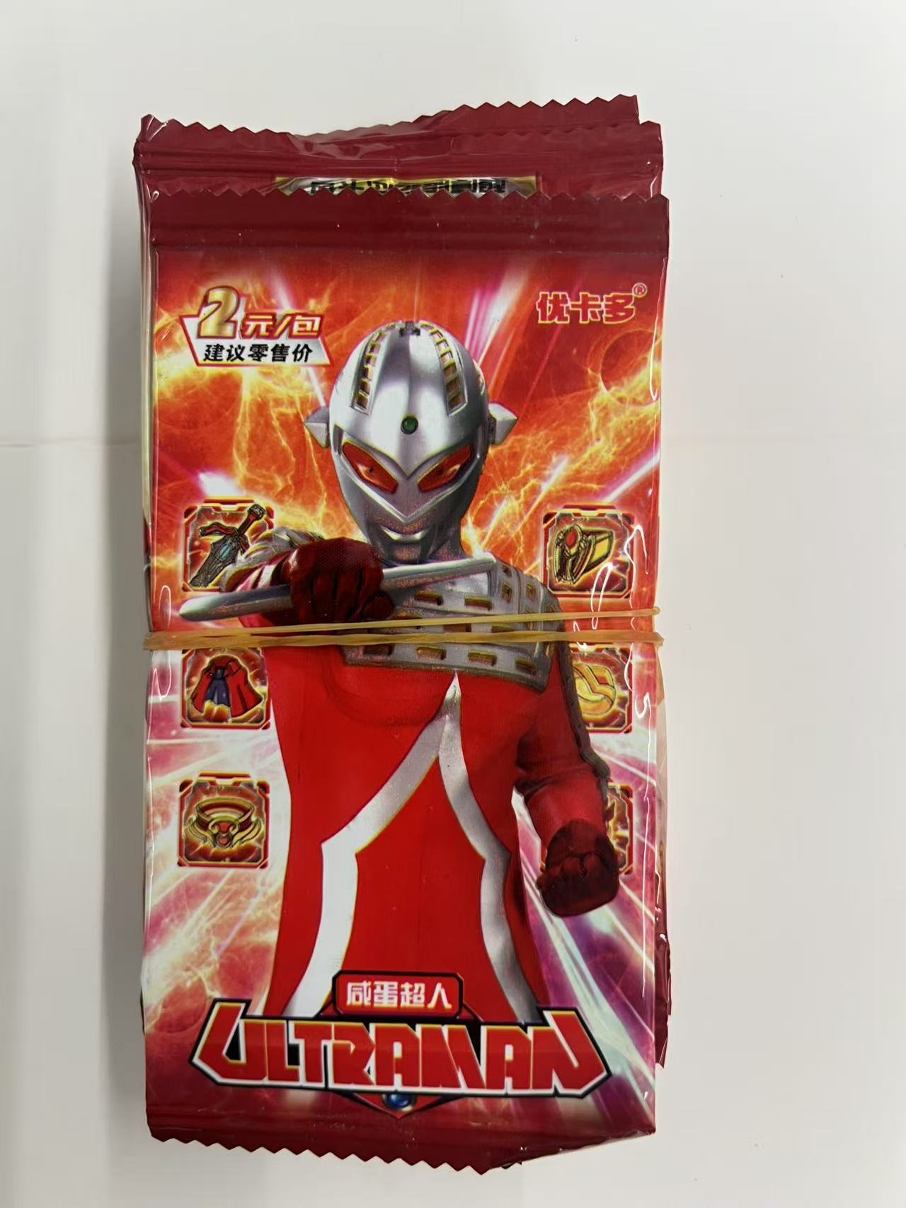 Ультраман, упаковка по 1 юаню (36 упаковок в коробке), карта золотого цвета; Ультраман 2-юань (полная коробка из 30 упаковок) Алмазная карта; Ультраман, упаковка по 2 юаня (30 упаковок в коробке), ультратолстая коллекционная карта; Набор карт Ultraman - Пакет за $1 (10 упаковок); Пакет Aote 2 Yuan (10 упаковок); Карты Ультрамен, упаковка по 2 юаня (10 упаковок); Круглая карточка Ultraman (вся коробка по 16 упаковок); Книга с карточками Ультрамена (1 книга); Книга с 3D-картами Ультрамен (1 книга); Набор английских карт Pokémon (10 упаковок); Набор карт Наруто (10 упаковок); Набор карт Dragon Ball (10 упаковок); Пакет карт One Piece (10 упаковок); Пакет карт «Истребитель демонов» (10 упаковок); Набор карт Ultraman (10 упаковок)