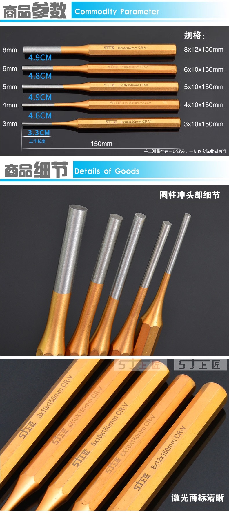 Профессиональный цилиндрический пробойник, ударный пробойник, штифтовый пробойник, выталкивающий пробойник, механический пробойник, круглое зубило 3 Jin Ye.