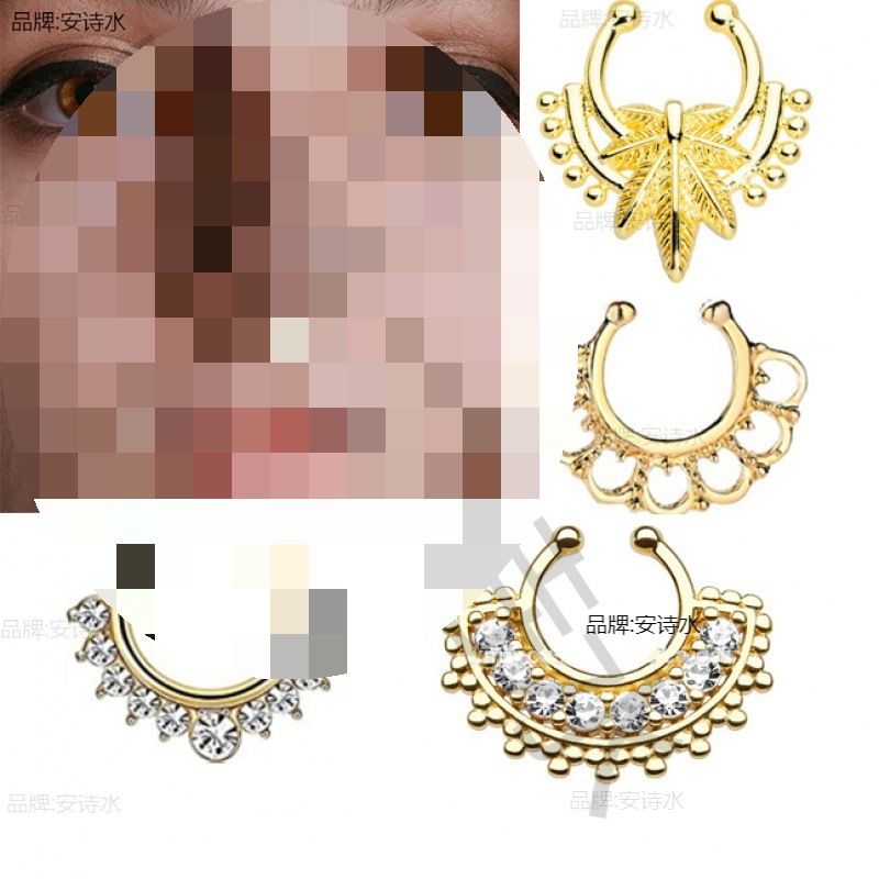 Гвоздик для носа без отверстия, поддельная наклейка, индийские украшения для женщин, антиаллергенное кольцо для носа с бриллиантом, европейский и американский клип для пирсинга, нос Leide Zhu