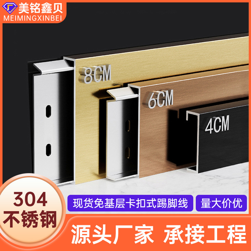 Плинтус из матовой нержавеющей стали 304, накладной, для проектов гостиниц, без подложки, металлический плинтус
