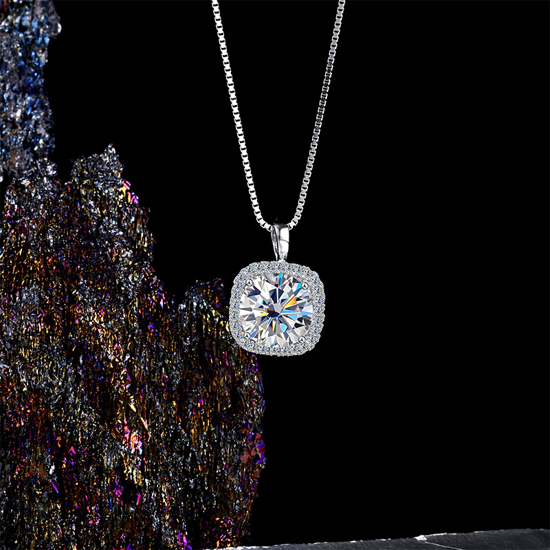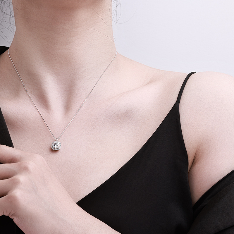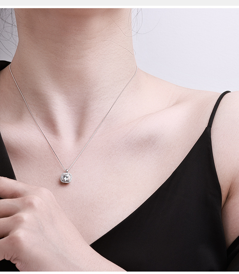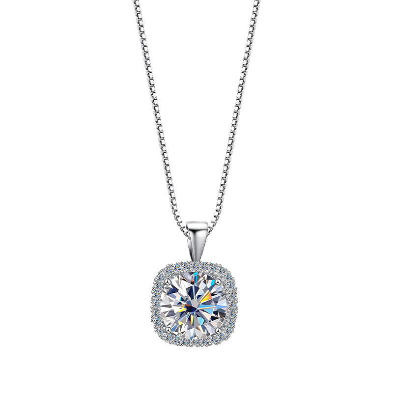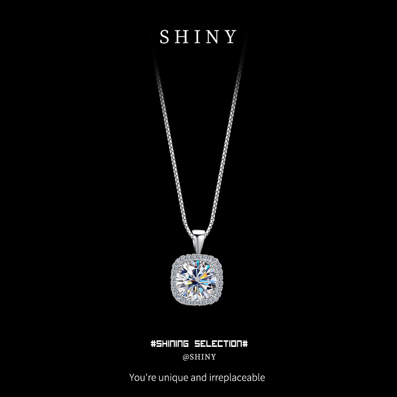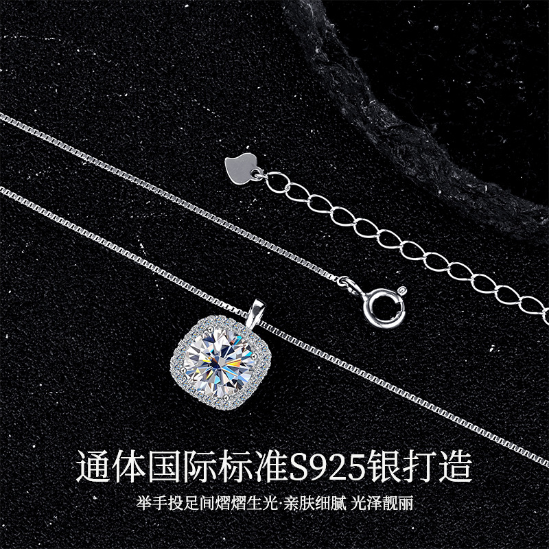Женское ожерелье из стерлингового серебра 925 пробы с подвеской из муассанита, благородная и высококачественная квадратная сумка, цепочка на ключицу, 1/2 карата, трансграничная оптовая продажа
