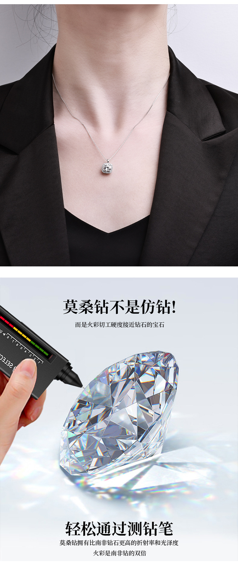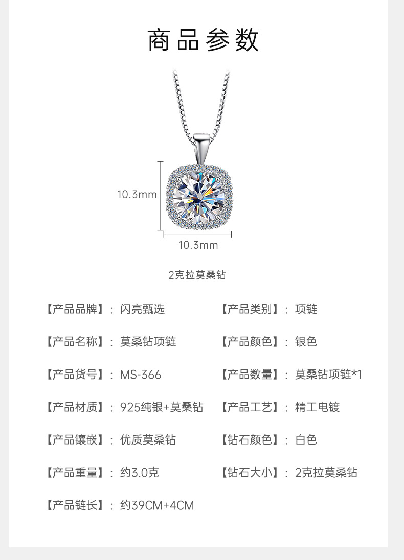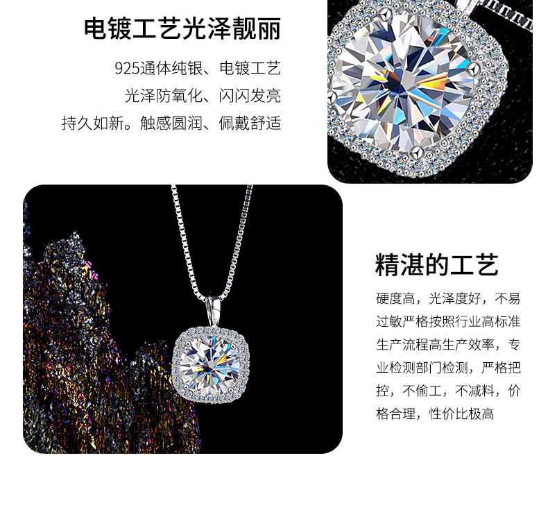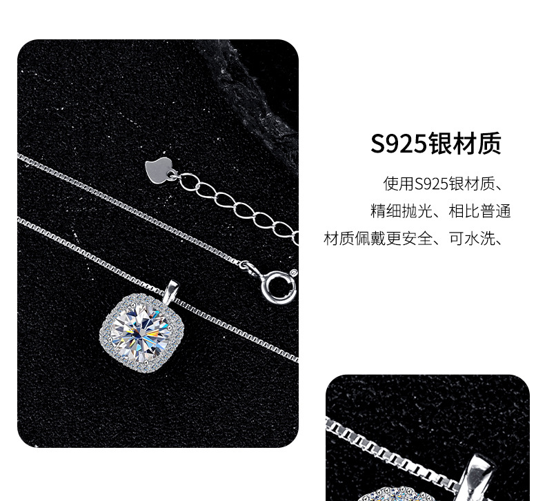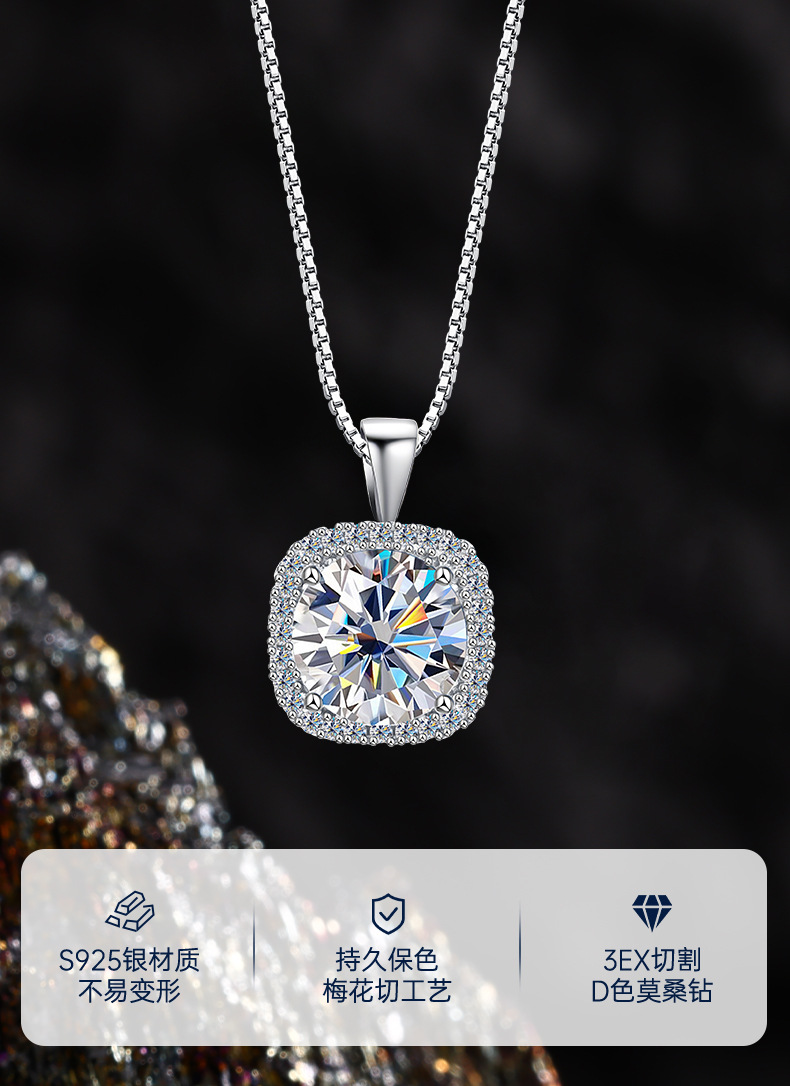 Женское ожерелье из стерлингового серебра 925 пробы с подвеской из муассанита, благородная и высококачественная квадратная сумка, цепочка на ключицу, 1/2 карата, трансграничная оптовая продажа