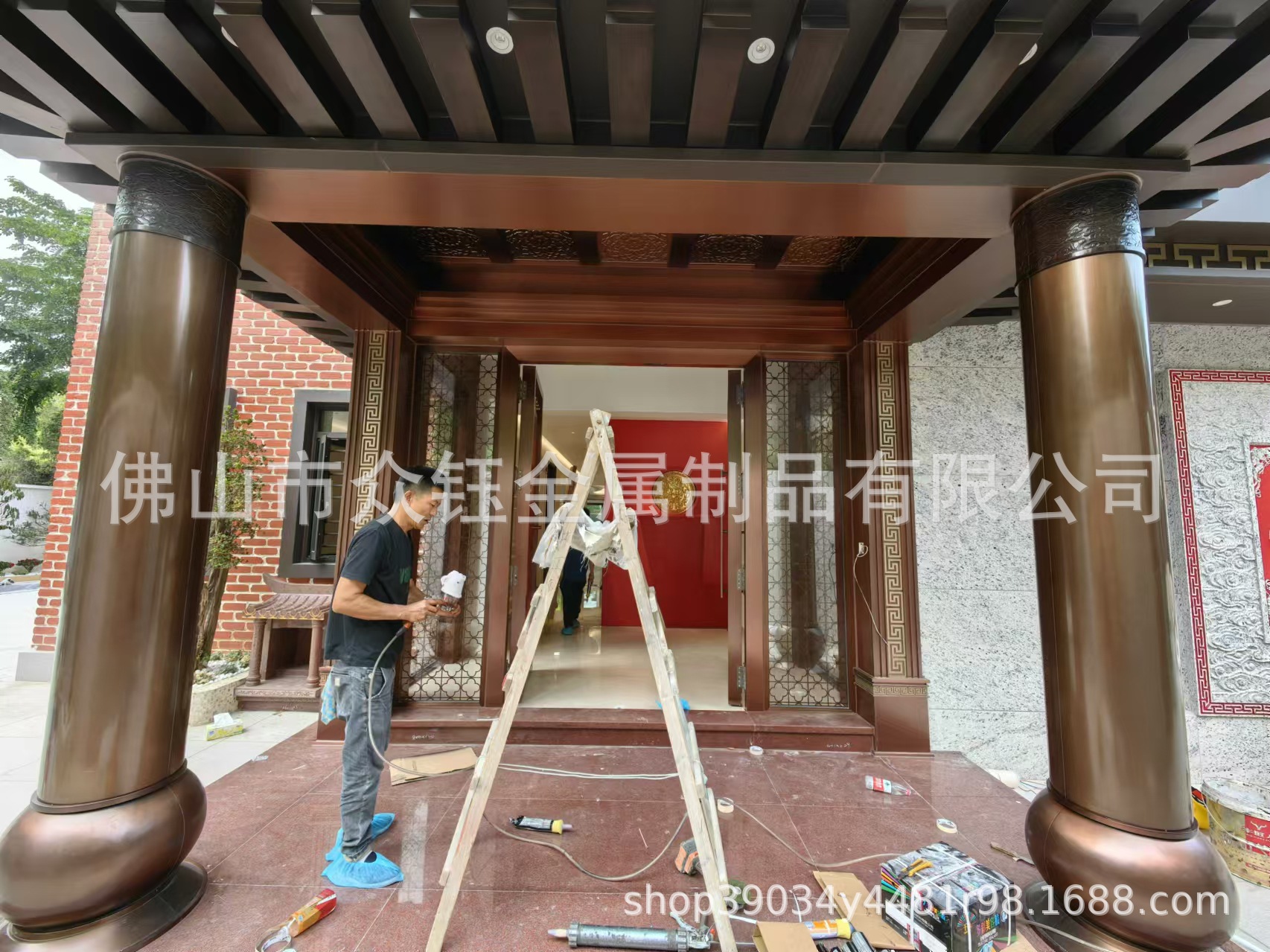 Вилла класса люкс в Гуанчжоу, китайские классические ворота, воротная будка, внутренняя и наружная металлическая отделка