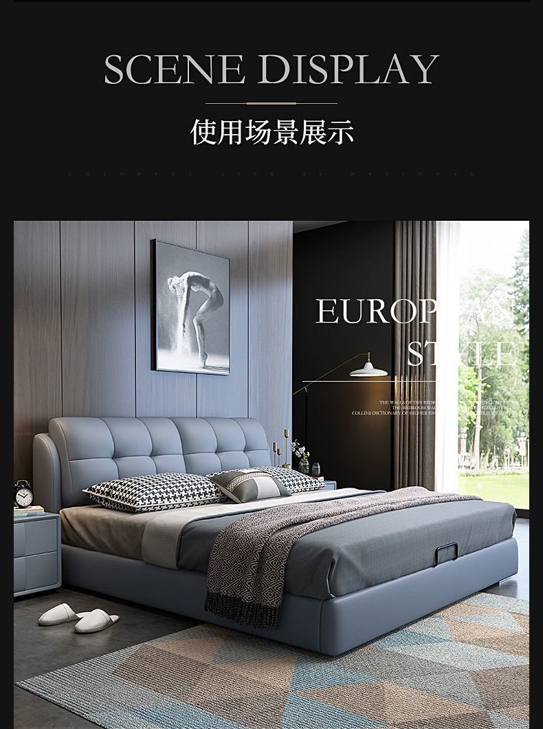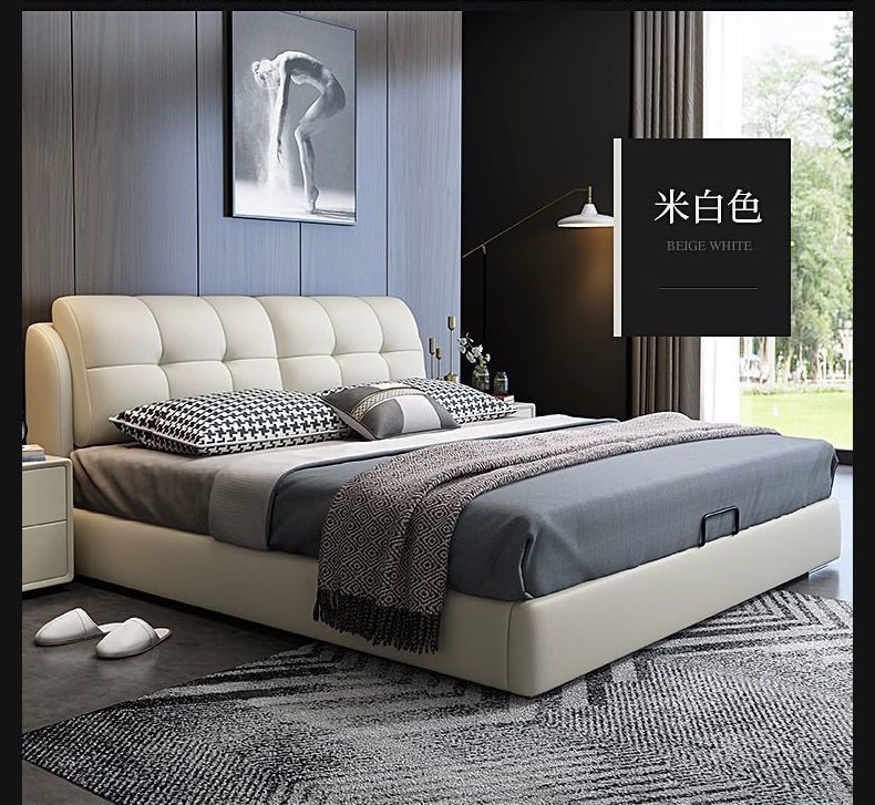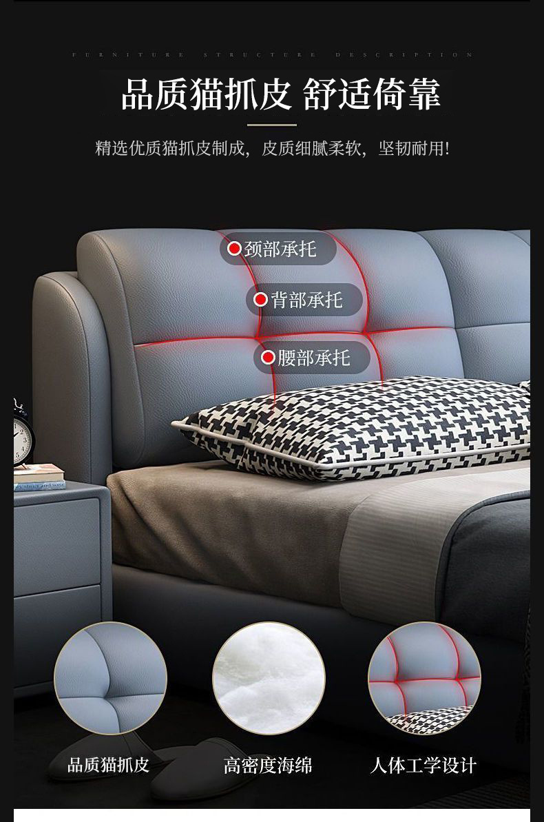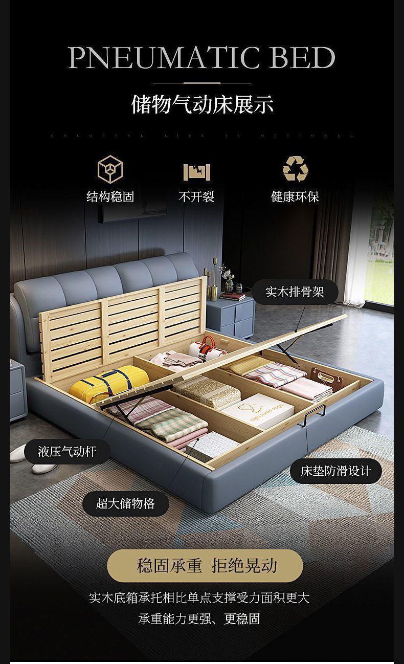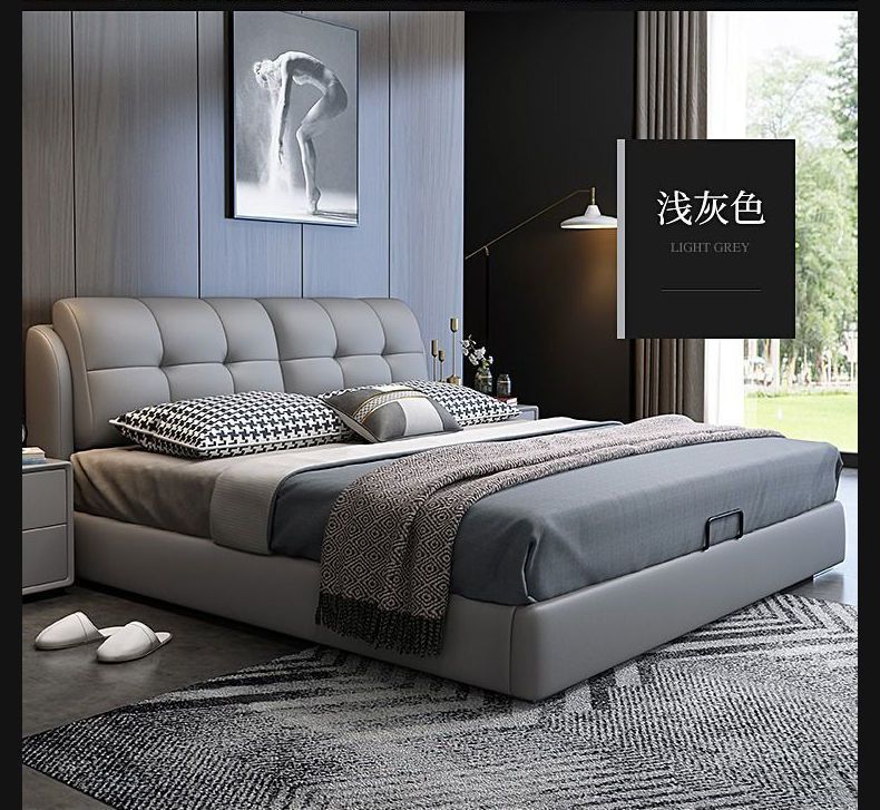 Легкая роскошная кожаная кровать из цельного дерева с мягкой обивкой, большая кровать в главной спальне размером 1,8x 2m м, двуспальная кровать для домашнего использования, односпальная кровать размером 1,5 м для арендной комнаты.