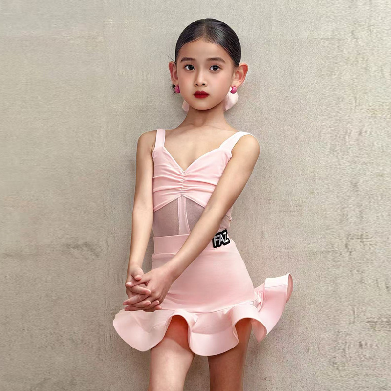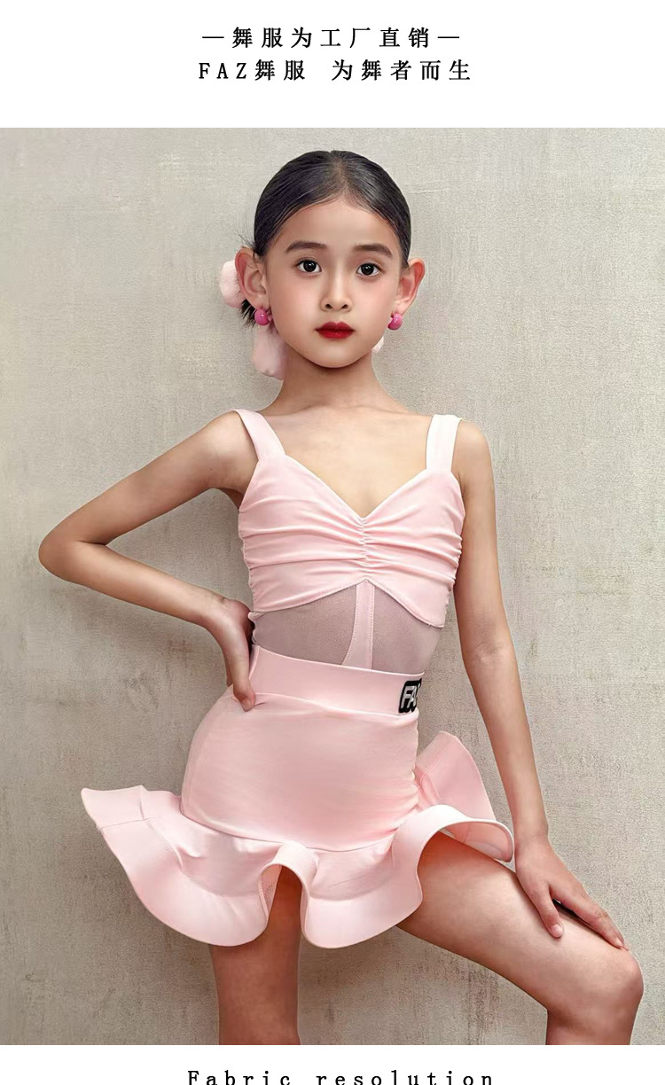 FAZ новая одежда для занятий латинскими танцами для девочек, профессиональная детская тренировочная одежда для выступлений, танцевальная юбка на подтяжках, костюм
