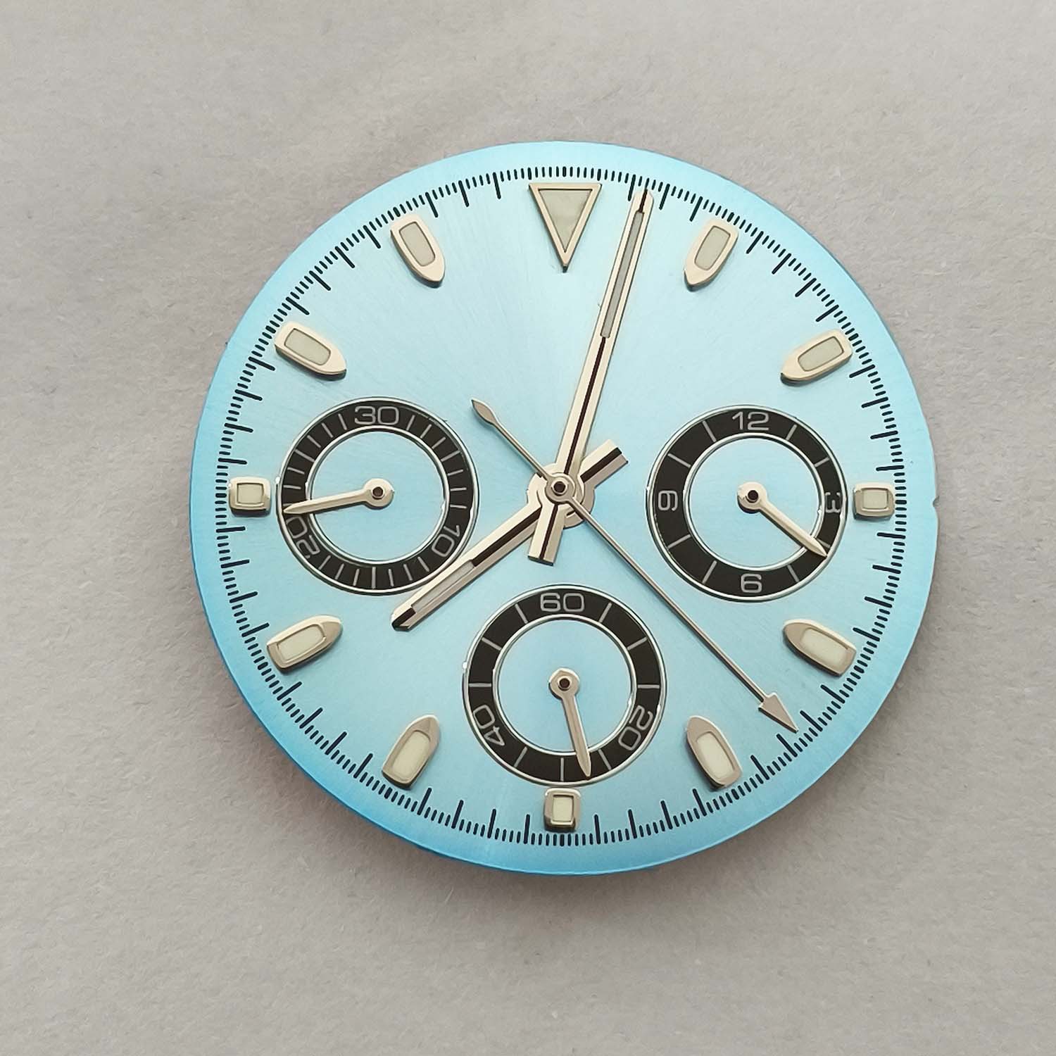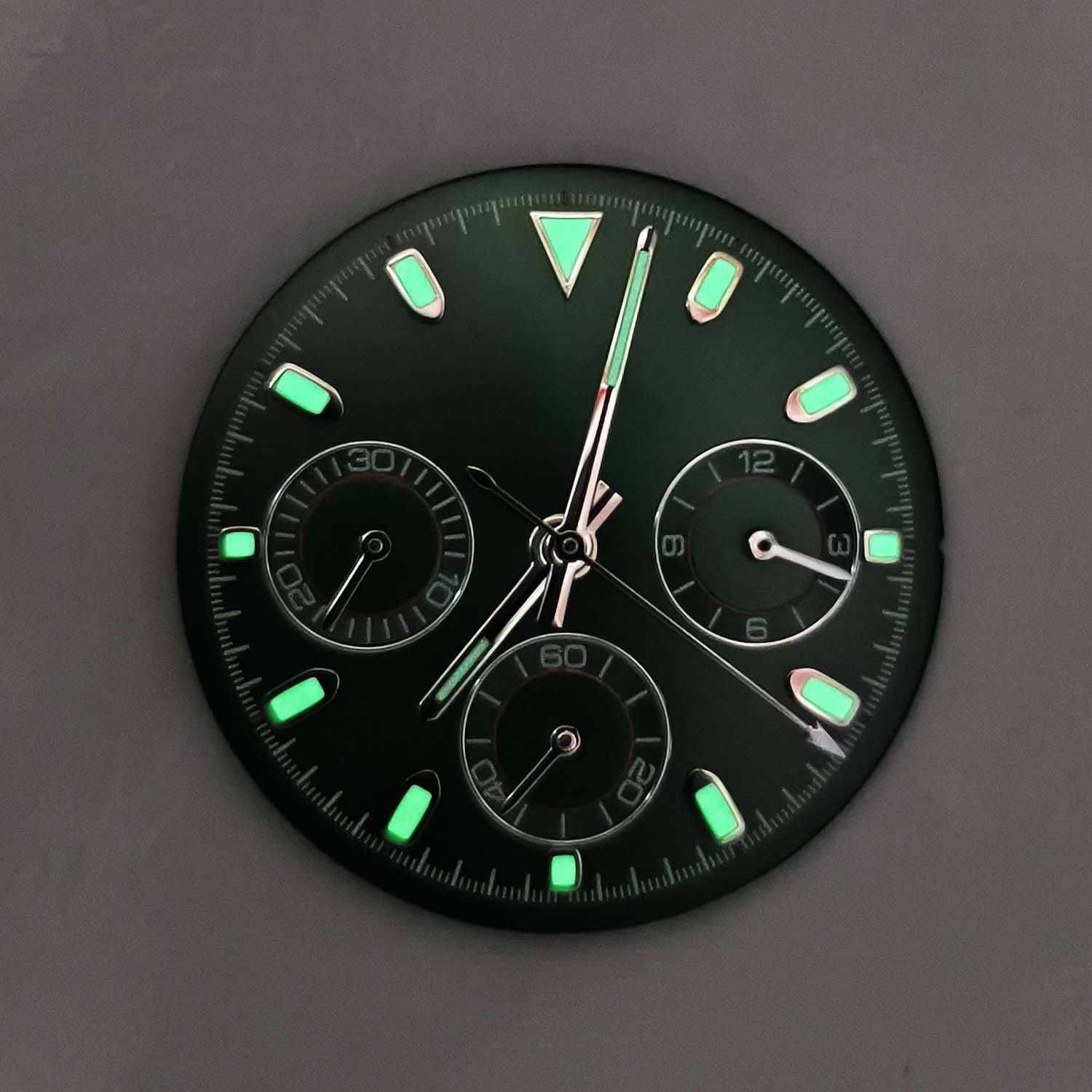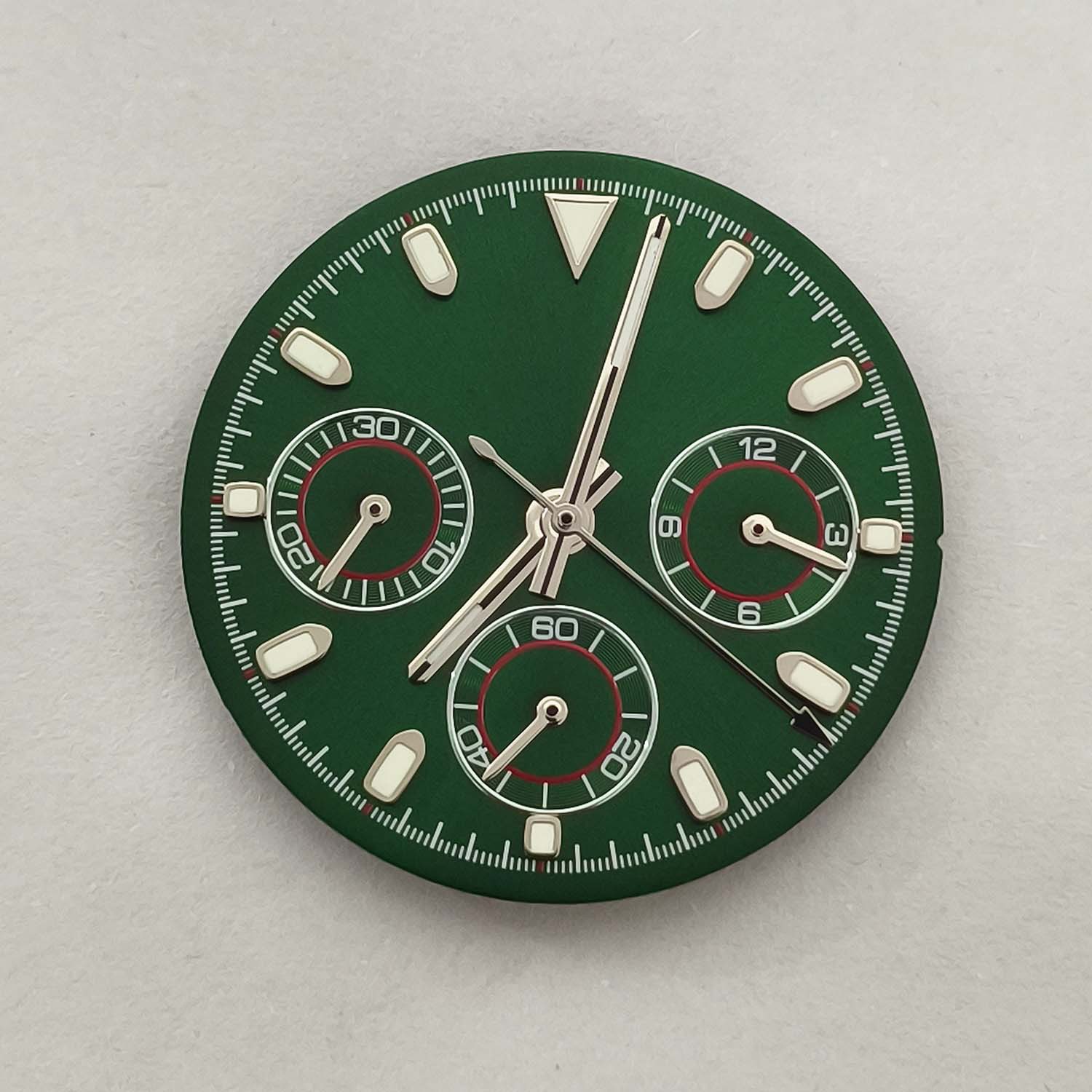 Аксессуары для часов, 29,5 мм, эмалированный кварцевый циферблат с узором солнца + игла для часов, зеленая светящаяся, подходит для японского механизма VK63