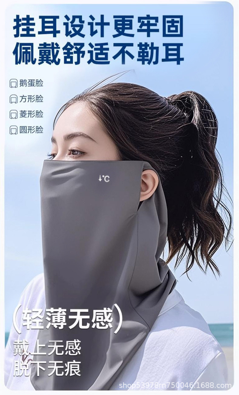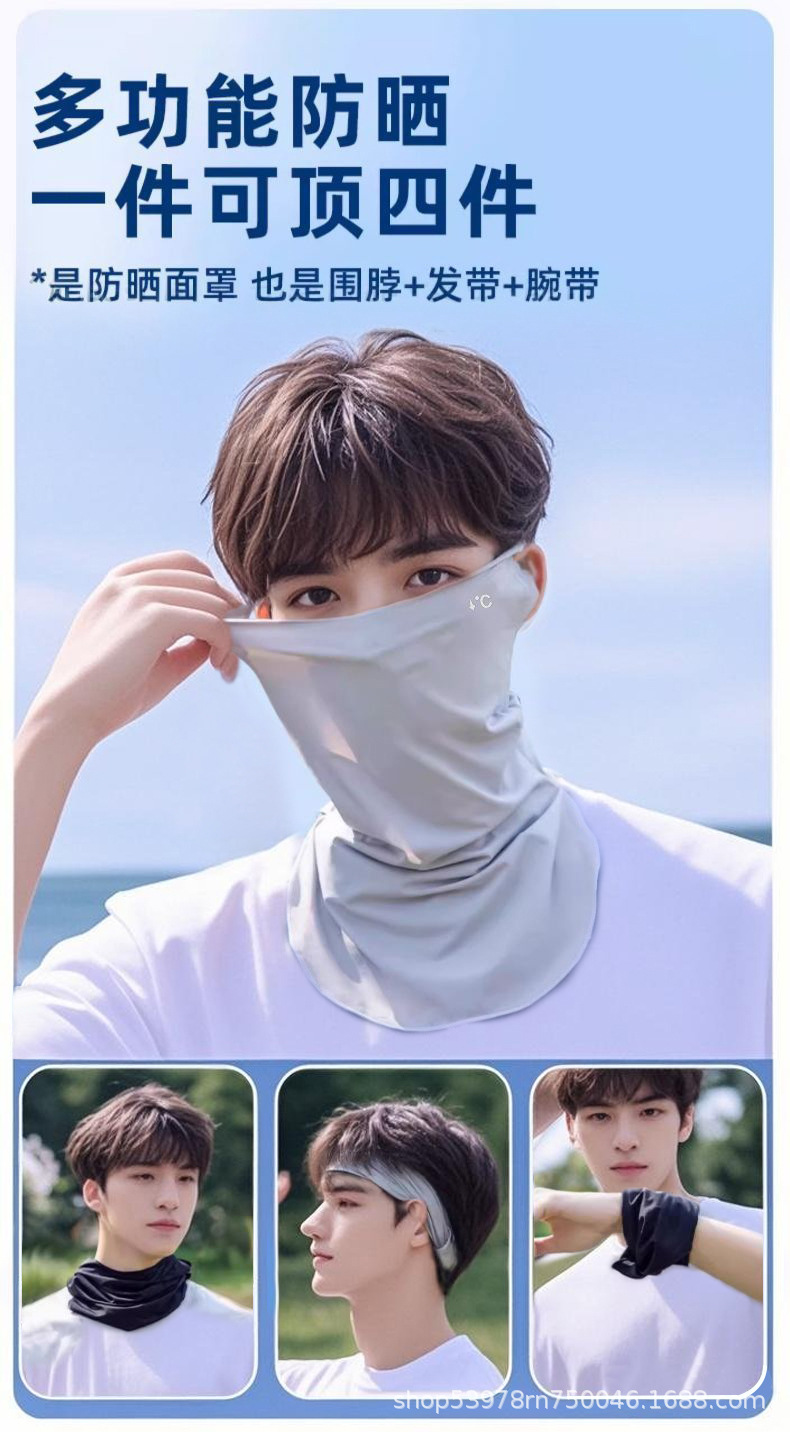 Летняя солнцезащитная маска из ледяного шелка с дышащими отверстиями, защита шеи, цельный шейный шарф с висящими ушками, быстросохнущий велосипедный шарф для мужчин и женщин, быстросохнущий