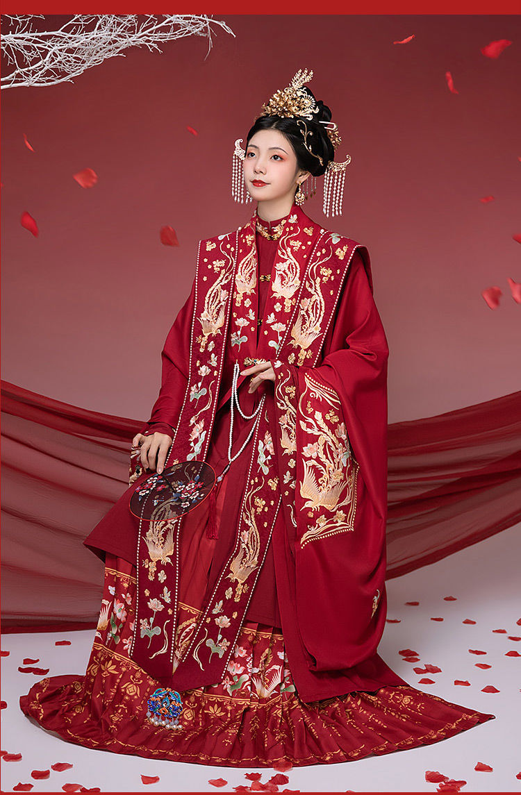 Оригинальный Fengtai Qu: свадебный халат Fengqiuhuang в стиле Мин с воротником-стойкой, двубортный, длиной до талии и сложной вышивкой.