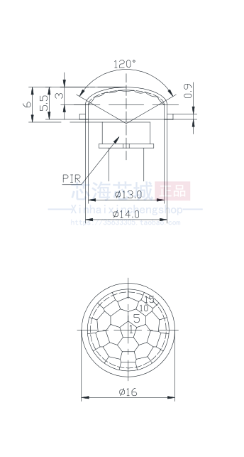 J8 использует зонд Френеля N0, объектив 3280, пироэлектрический датчик человеческого тела, 3 объектива, инфракрасный датчик, зонд G3