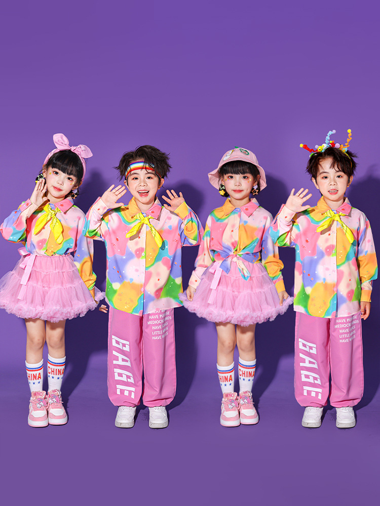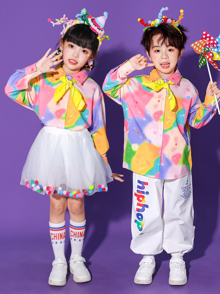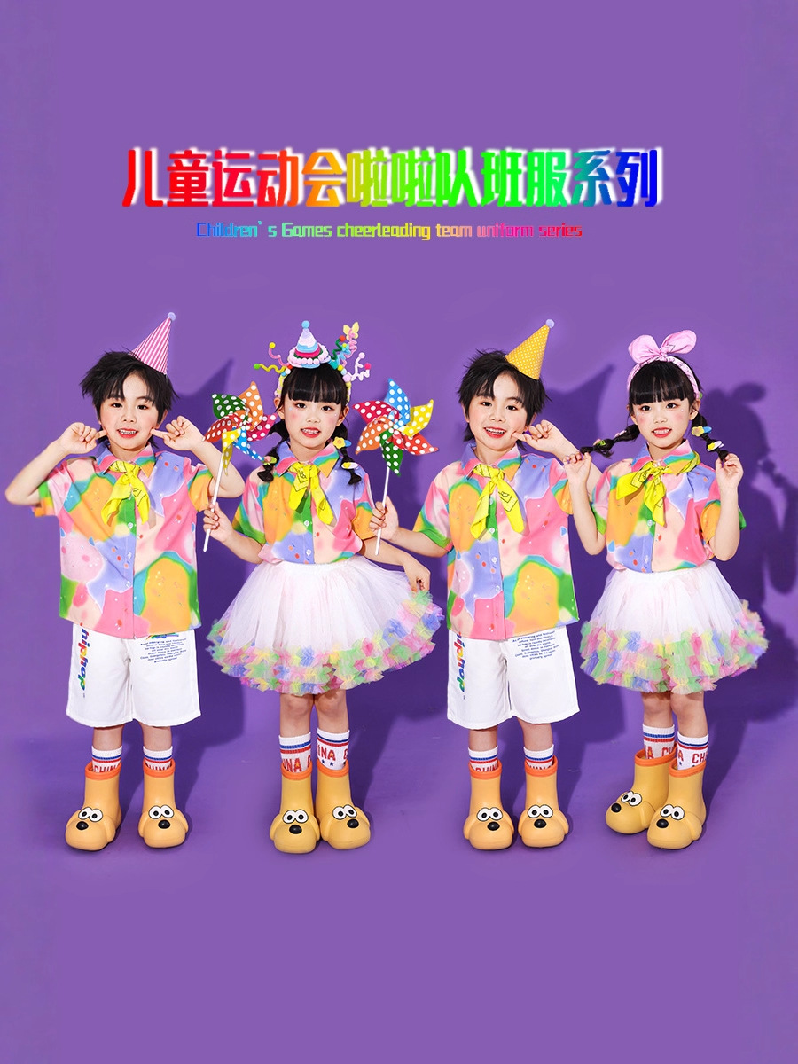 Детские костюмы для чирлидинга, красочные футболки с коротким рукавом, фотографии выпускников детского сада, юбки-пачки, брюки с длинным рукавом, танцы
