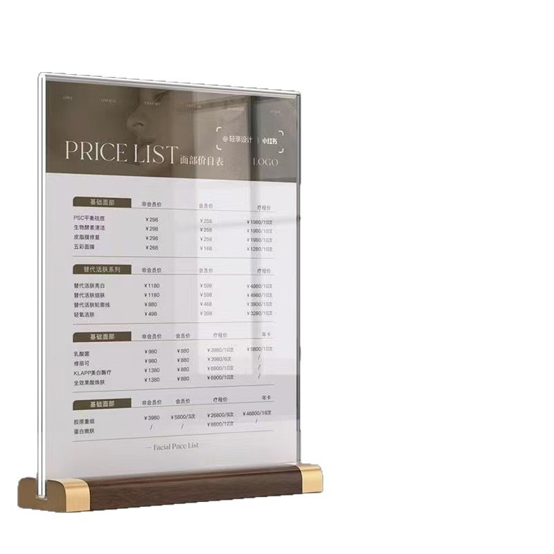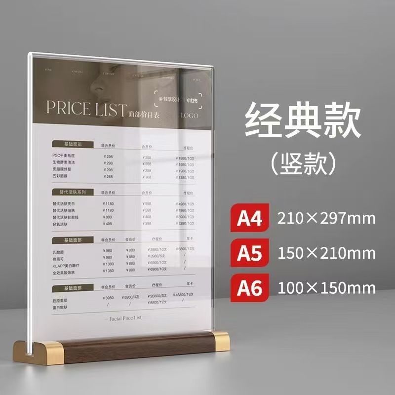 Настольная карточная табличка из орехового дерева формата А4, акриловая подставка для карточек формата А5, меню, прайс-лист на напитки, рекламная доска