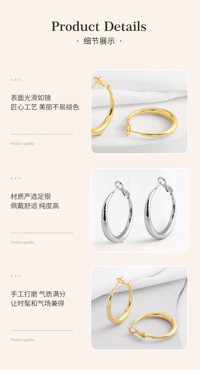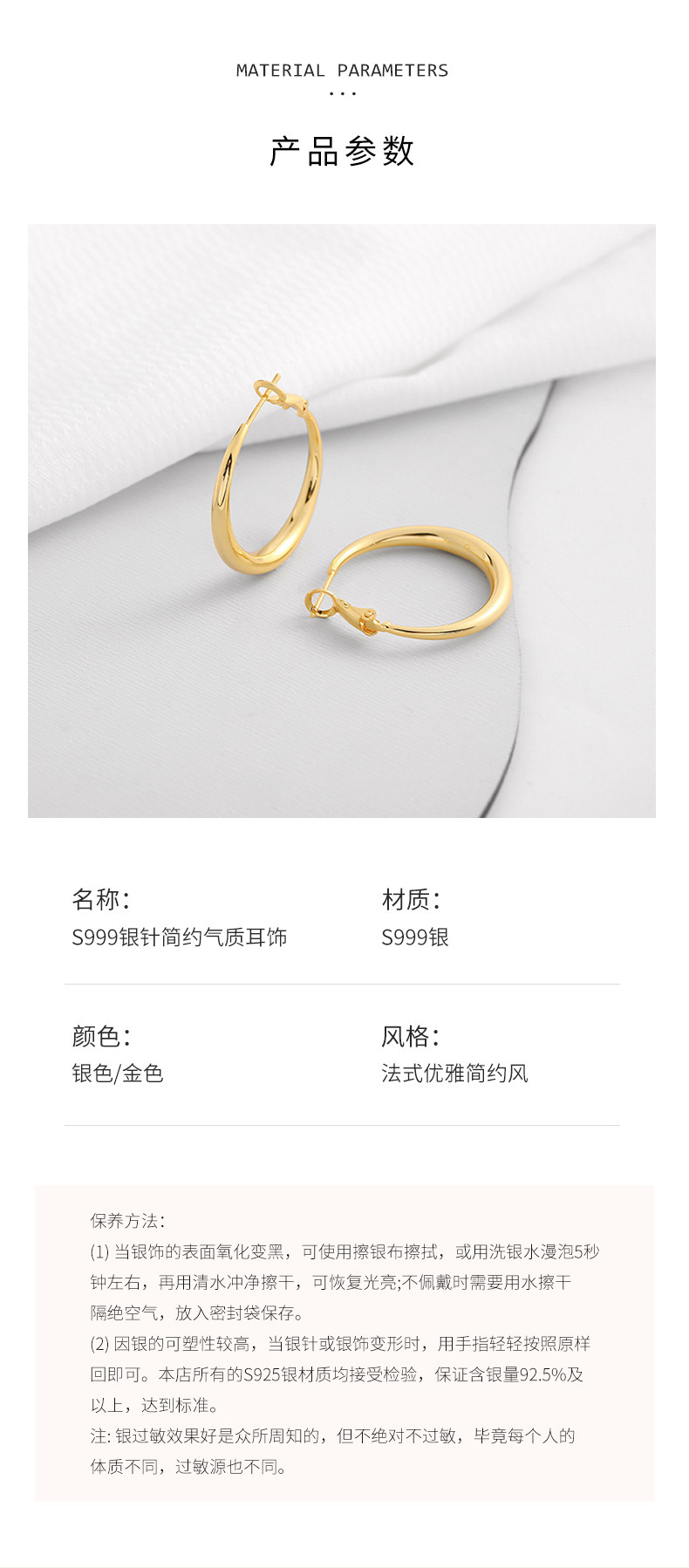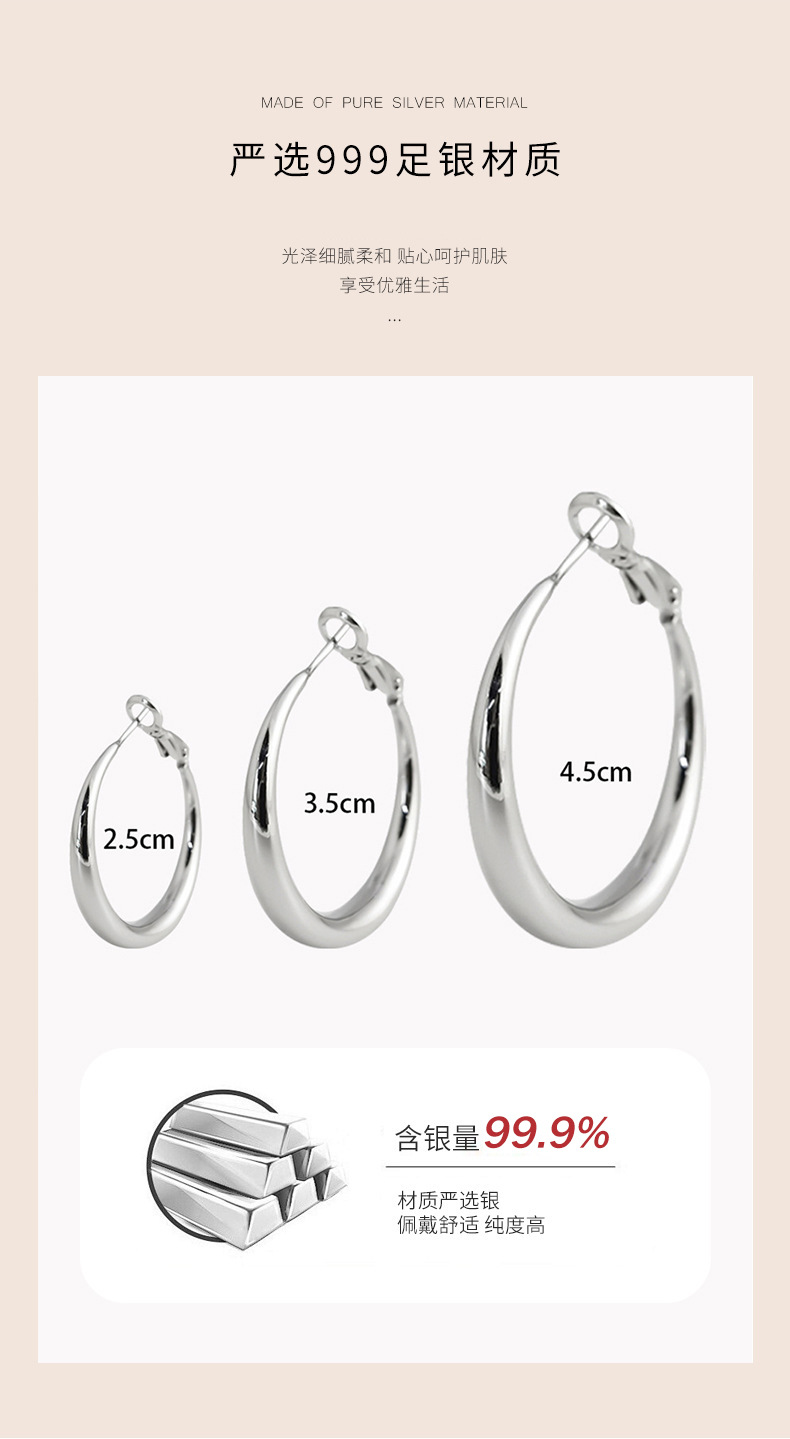Серебряные иглы S999, минималистичные элегантные серьги, круглые европейские и американские серебряные иглы, модные гладкие манжеты для ушей, обручи для ушей, популярные в трансграничных сезонах