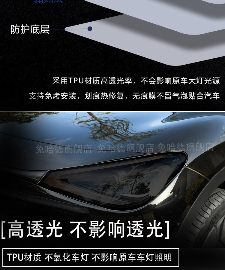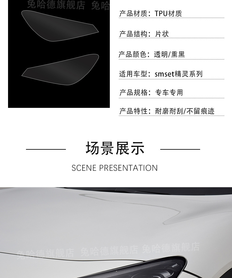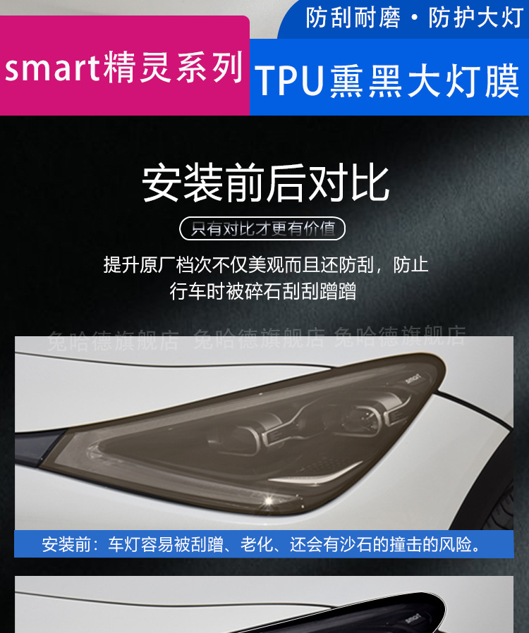 Подходит для Smart Elf TPU-черненая/прозрачная защитная пленка для фар автомобиля, защитная пленка для автомобиля от царапин