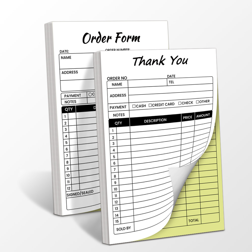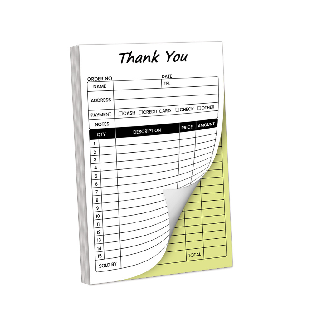Книга для чеков Amazon English, белая и желтая, двухкомпонентная, самокопирующаяся, с бумажной подложкой